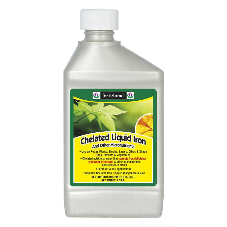 Quick, economical and easy correction of iron deficiency (yellowing of foliage) in your plants. Nutritional spray adds other key micronutrients to your shrubs, lawns, tress, flowers & vegetables. Concentrate readily mixes with water. Should not be substituted for fertilizer. Apply 2 to 10 teaspoons per gallon depending on height of plant. See label for instruction. Apply a thorough foliage spray to both sides of leaves. Mix 1 tablespoon per gallon of water.