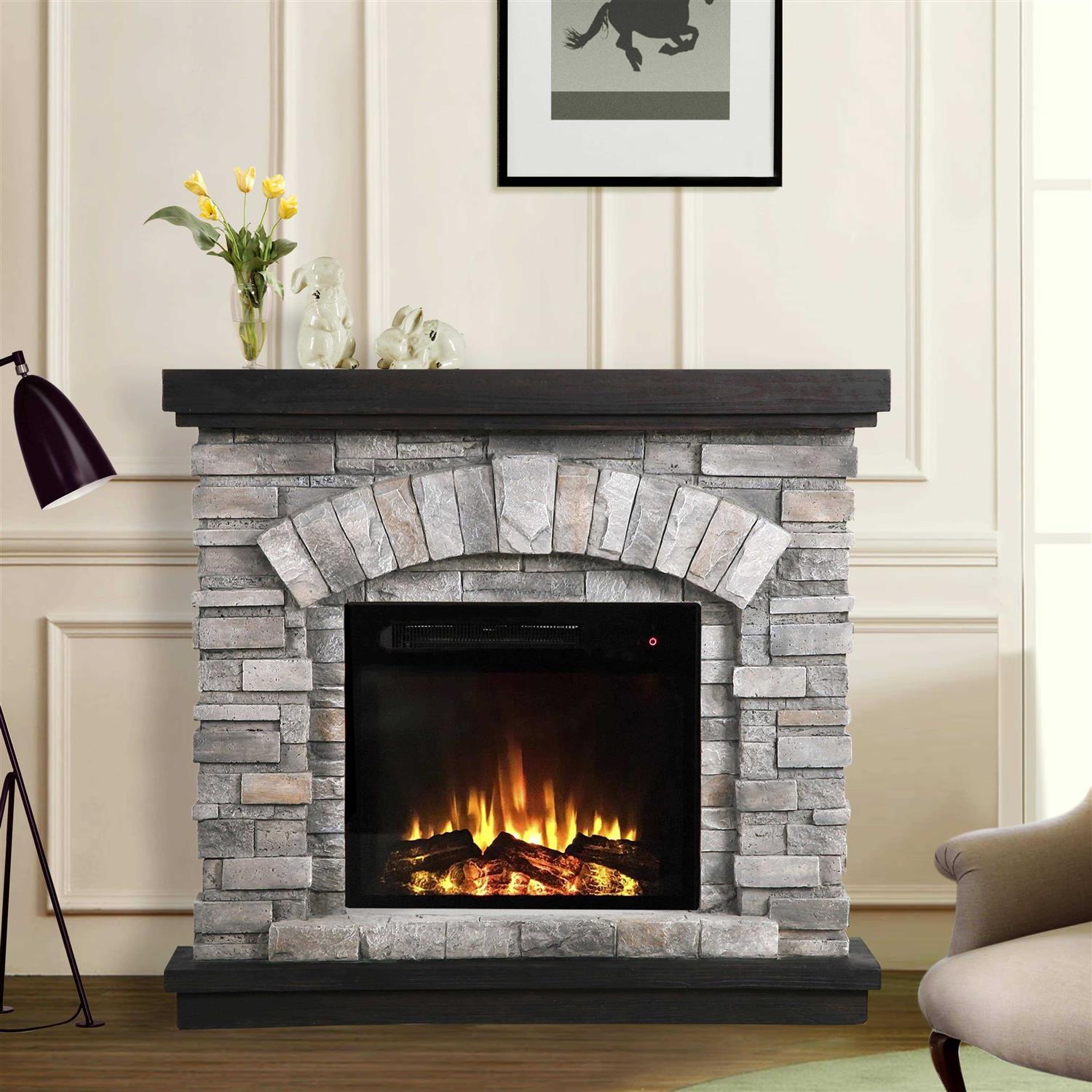 The electric firebox mimics the look of a real. but does not require a chimney or vents and plugs into a standard outlet, for a maximum 4700 BTUs output, it features a safety stop, with thermal overload protection. It also features a screen and an LED bulb. White fireplace mantel is sized perfectly for your living room and kitchen.