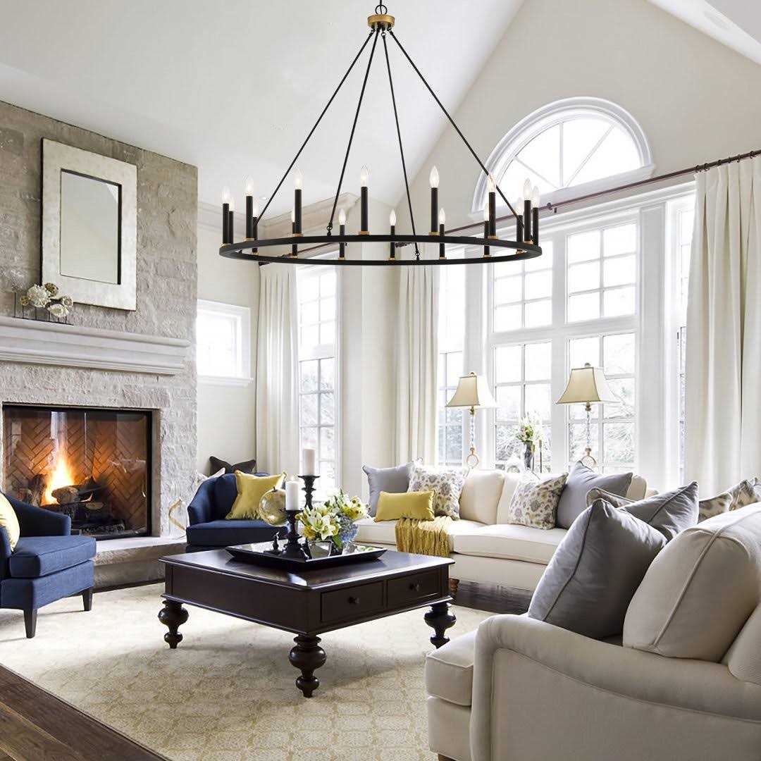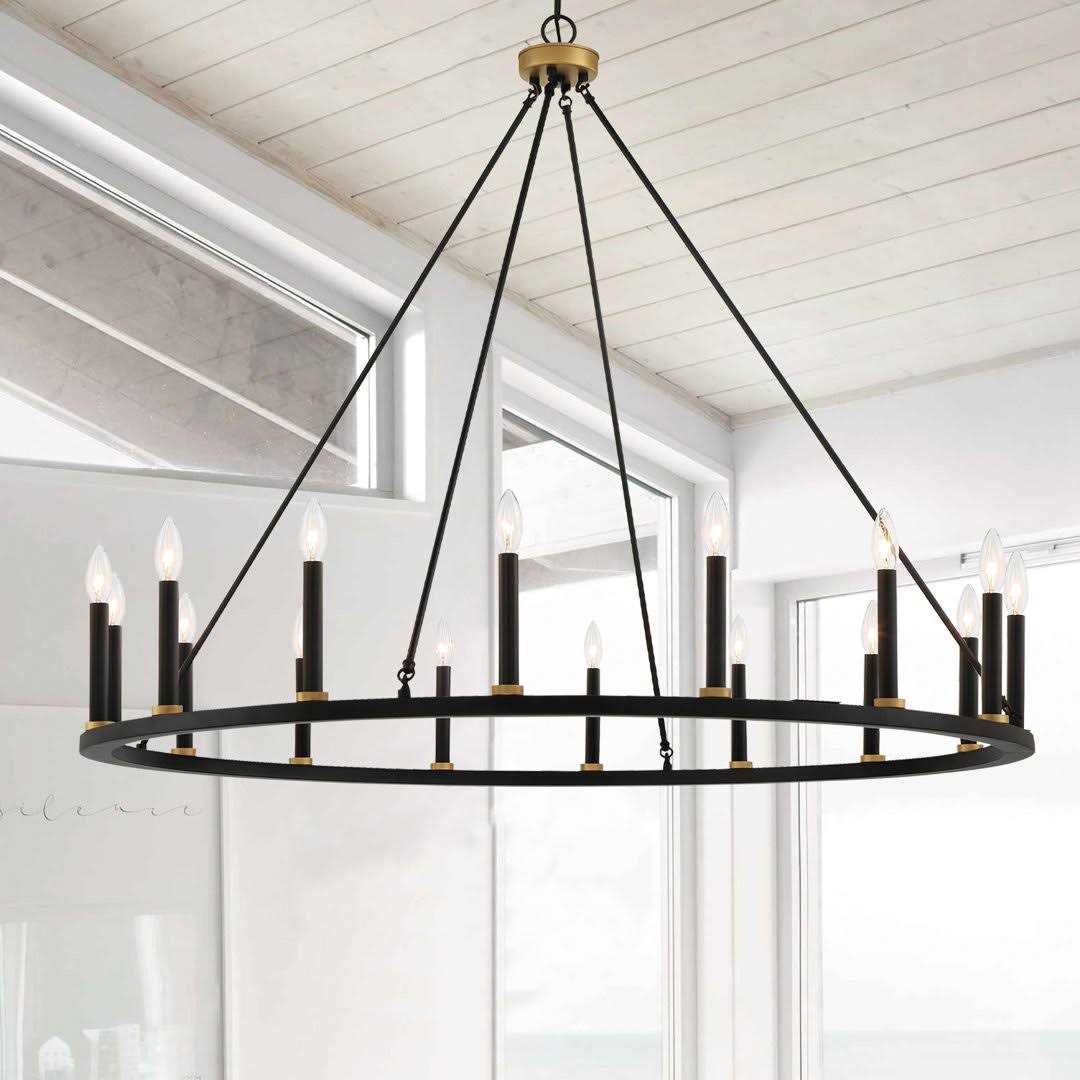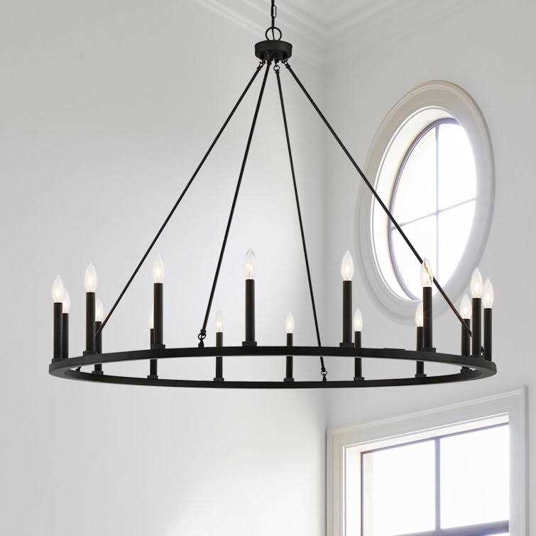 The frame is made from metal with the sleek finish of your choice, so it’s easy to pair with existing color palettes and decor styles. The round silhouette features sixteen candle-style holders each can be compatible with a candelabra-base bulb of up to 60W (Bulb not included). Best of all, this chandelier is compatible with smart devices, sloped ceilings, and dimmer switches, and even boasts an adjustable height for maximum versatility.
