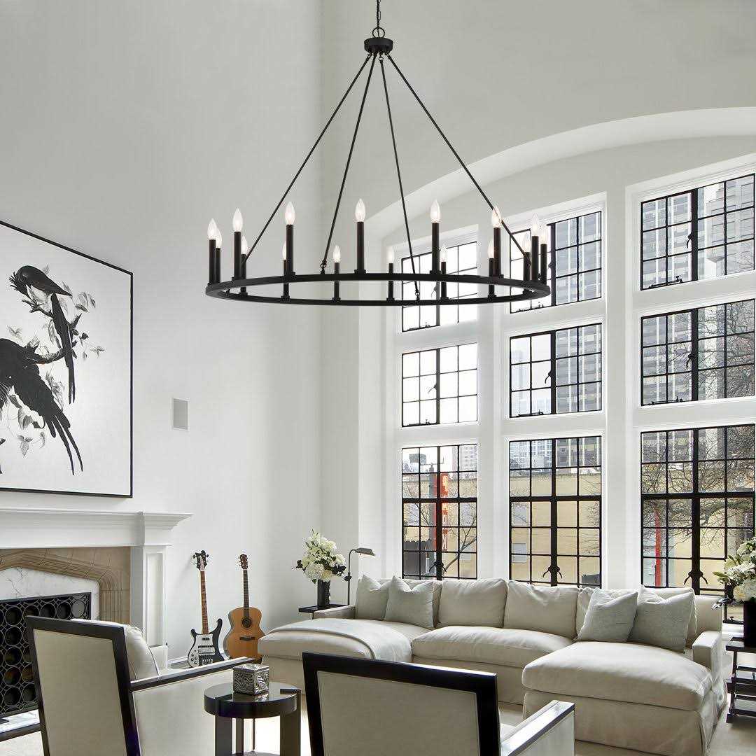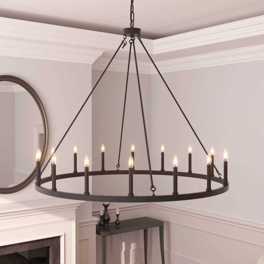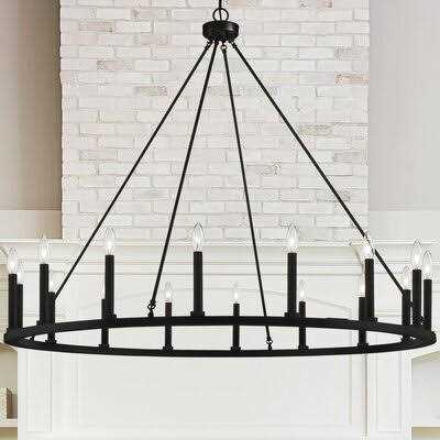 The frame is made from metal with the sleek finish of your choice, so it’s easy to pair with existing color palettes and decor styles. The round silhouette features sixteen candle-style holders each can be compatible with a candelabra-base bulb of up to 60W (Bulb not included). Best of all, this chandelier is compatible with smart devices, sloped ceilings, and dimmer switches, and even boasts an adjustable height for maximum versatility.