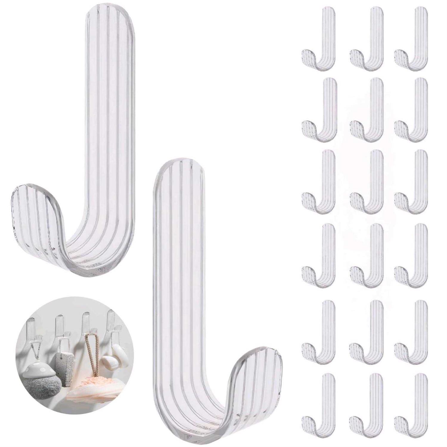 Fliqor 20 Pack Adhesive Hooks,Damage Free Hanging Wall Hooks with Self Adhesive Key Hooks for Wall Decorative ,Command Strips Hooks for Bath Towel