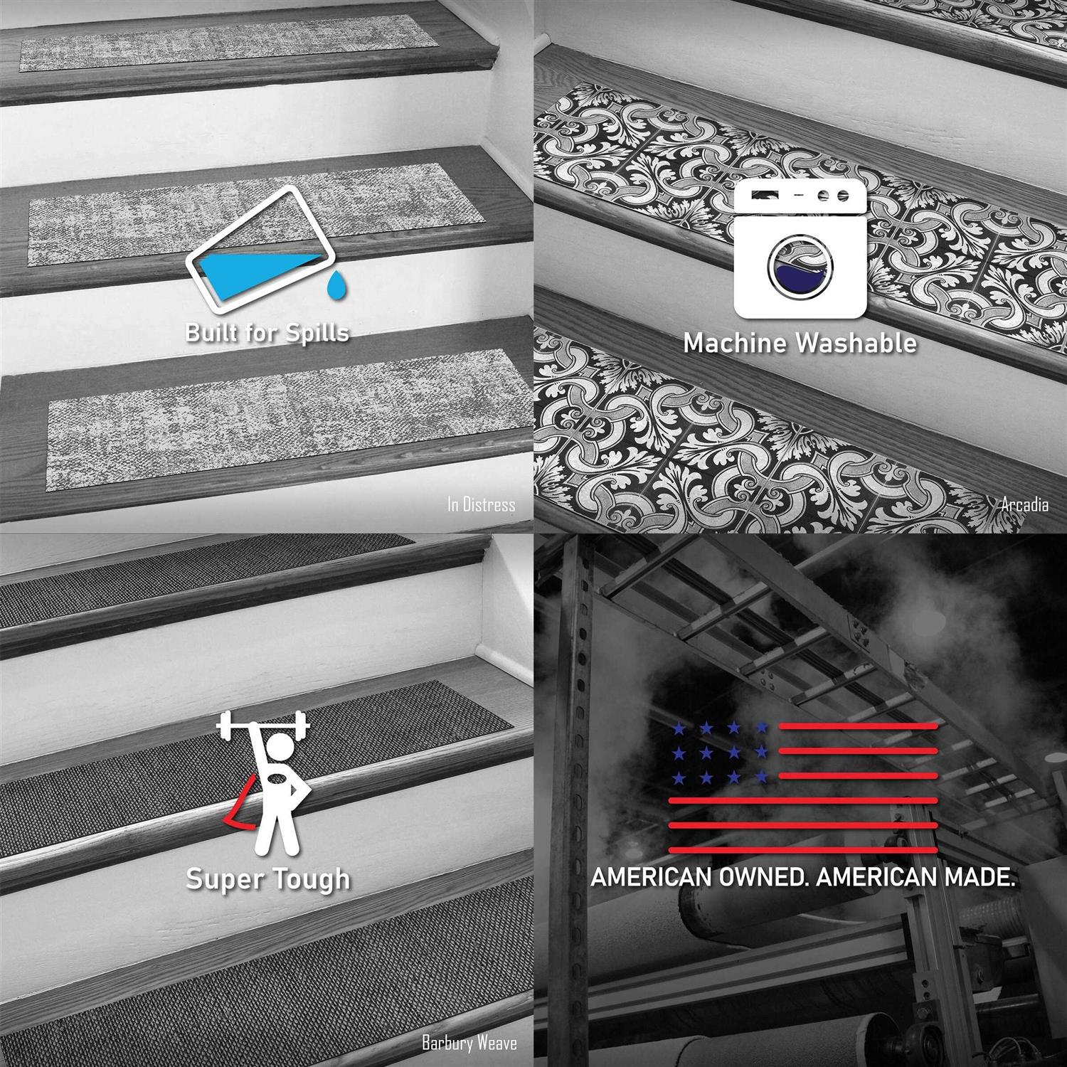 Bungalow Flooring Are your stairs in need of something extra, but you aren’t quite sure what? Based on the old-world painted floor cloths our ancestors used, FlorArt Stair Treads add a decorative, low-profile layer of protection that looks as good as it performs; and best of all – it’s machine washable! No more worries about stains or spills because our treated tops are stain-resistant and easy to clean. Made right here in the USA using industrial-grade polyester and rubber materials, FlorArt Stair Treads are built to last.