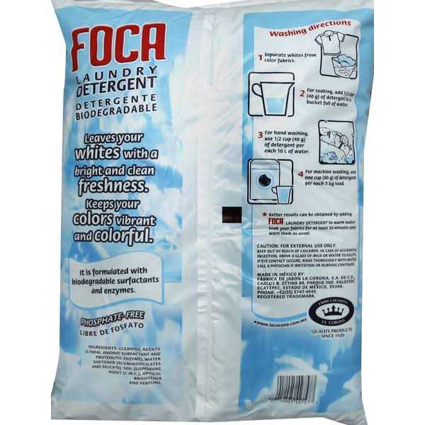 Change the way you do your laundry by using Foca Biodegradable Laundry Detergent. Use it to keep your clothes looking their best wash after wash. This Foca laundry detergent will have both whites and colors looking bright and vibrant. This product comes in a bag that contains 70.54 oz. It does not contain any phosphate. Pour in the amount you need depending on the size of the load and get started. It can be used for soaking as well as handwashing various garments. This powder is formulated with biodegradable surfactants and enzymes.