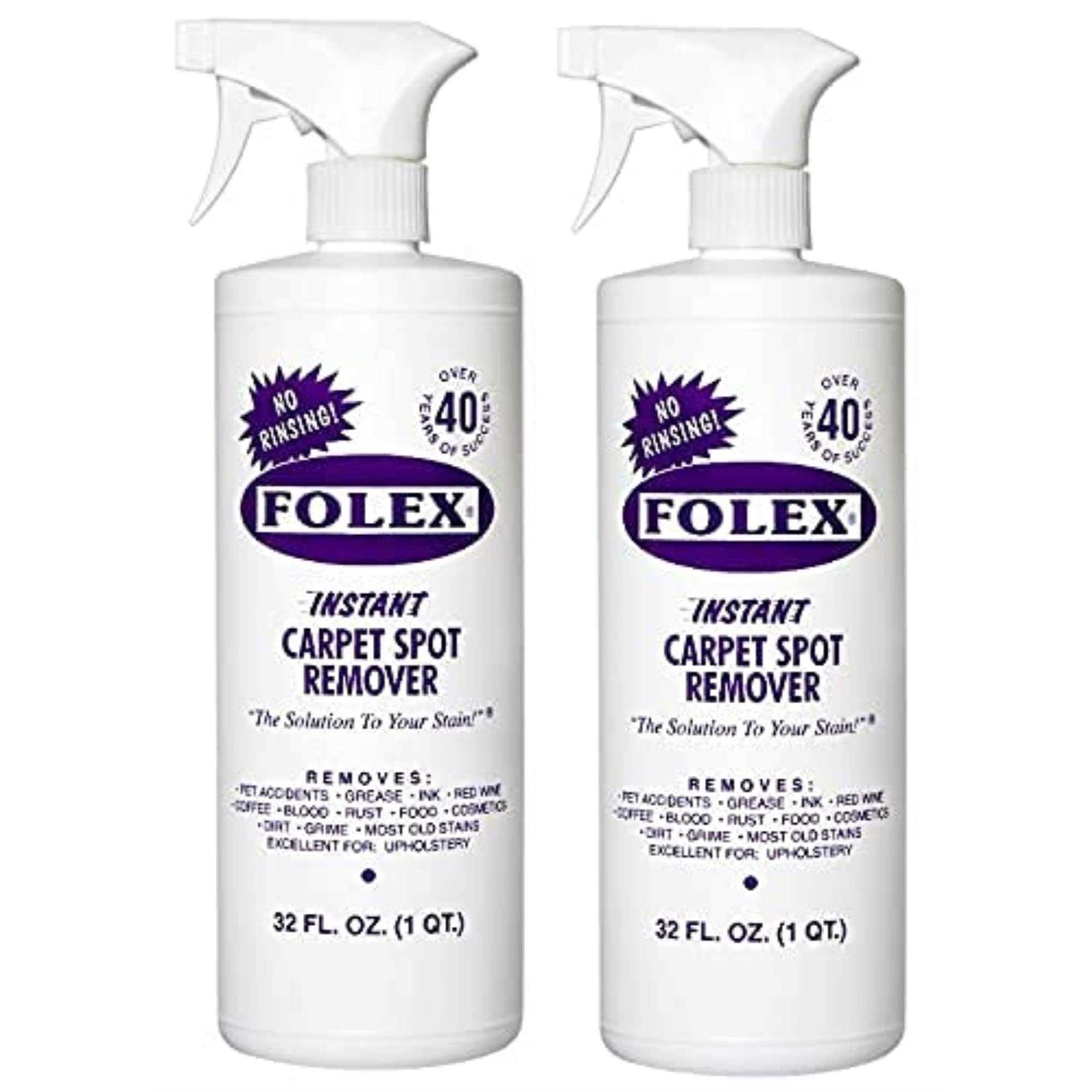 Instant results, and safe for any colorfast carpet or material that can be safely dampened with water Removes a large variety of stains with no rinsing, vacuuming, or waiting to see results Folex Carpet Spot Remover can remove virtually any stain from practically any colorfast carpet, rug, upholstery, or clothing item Non-toxic and completely non-irritating to normal skin Contains no VOCs or CFCs and is petroleum free Non-magnetic, water based, non-ionic surfactant formula which keeps spots gone after cleaning Odor-free, with no unpleasant chemicals Non-flammable; contains no solvents of any kind. Removes stubborn grease, dirt and grime. Ideal for pet accidents, grease, ink, red wine, coffee, blood, rust, food, cosmetics, dirt, grime, and most old stains. Excellent for carpet, upholstery, woodwork, and wall surfaces. Safe for any colorfast carpets and upholstery. Requires no rinsing or vacuuming – Requires no rinsing or vacuuming