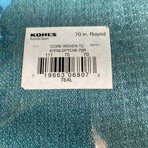 Create the perfect dining space for special occasions or family feasts with this easy-care woven tablecloth from Food Network. Solid design coordinates perfectly with your dining decor Spills bead up and wipe away quickly, making clean up easy Polyester Machine wash Imported Size: 70″ ROUND. Color: Turq/Aqua.
