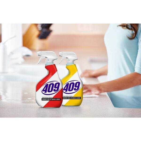 Formula 409 Multi-Surface Cleaner in Original scent is the ultimate cleaner, degreaser and disinfectant for your home, even removing 100% of grease and grime. The antibacterial formula quickly cuts through grease and grime and disinfects as you wipe, killing over 99.9% of germs*, including the COVID-19 virus . One cleaner works on many surfaces: stainless steel, synthetic marble, glazed ceramic tile, linoleum, countertops*, stovetops*, sinks, floors, cabinets, tubs and walls*. The no-bleach formula deodorizes your kitchen and bathroom surfaces, leaving behind a fresh scent. This household cleaner works great indoors and out on a wide range of hard nonporous surfaces. One 128-ounce refill can fill four 32-ounce spray bottles. *Salmonella enterica, Escherichia coli 0157:H7 (E. coli), Staphylococcus aureus, Influenza A Virus, Herpes Simplex Virus Type 2 on hard, nonporous surfaces. A potable rinse is required for food contact surfaces. Kills SARS-CoV-2 on hard, nonporous surfaces.