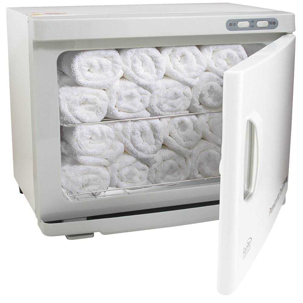 Towel warmer heats to 180°F in about 30 minutes and features UV sterilizer to keep towels clean and fresh. Product Specifications: Dimensions: 17.75” W x 11” D x 14” H. Inside Dimensions: 14.5” W x 7.5” D x 9.75” H. 24 Towel Capacity.