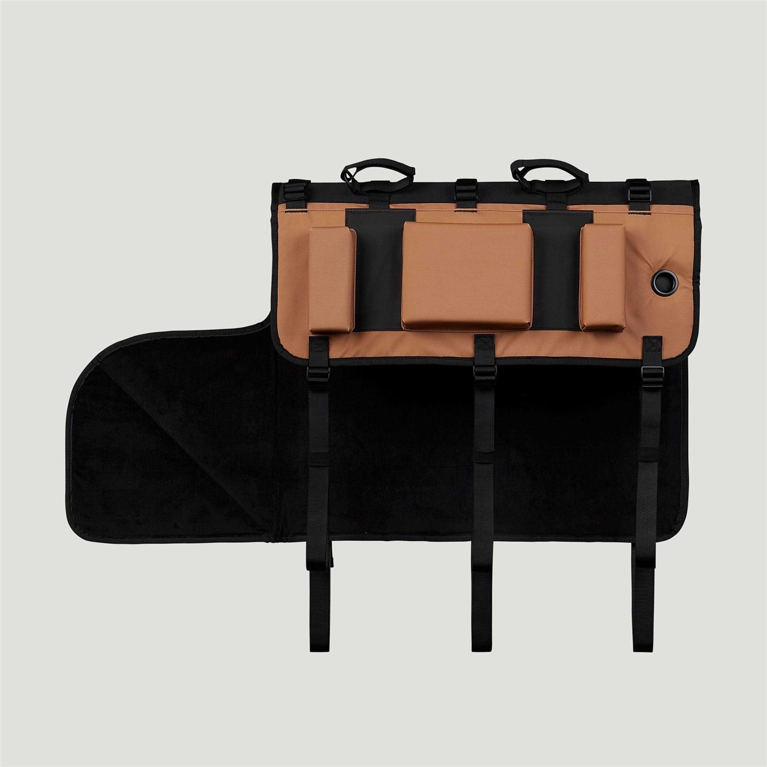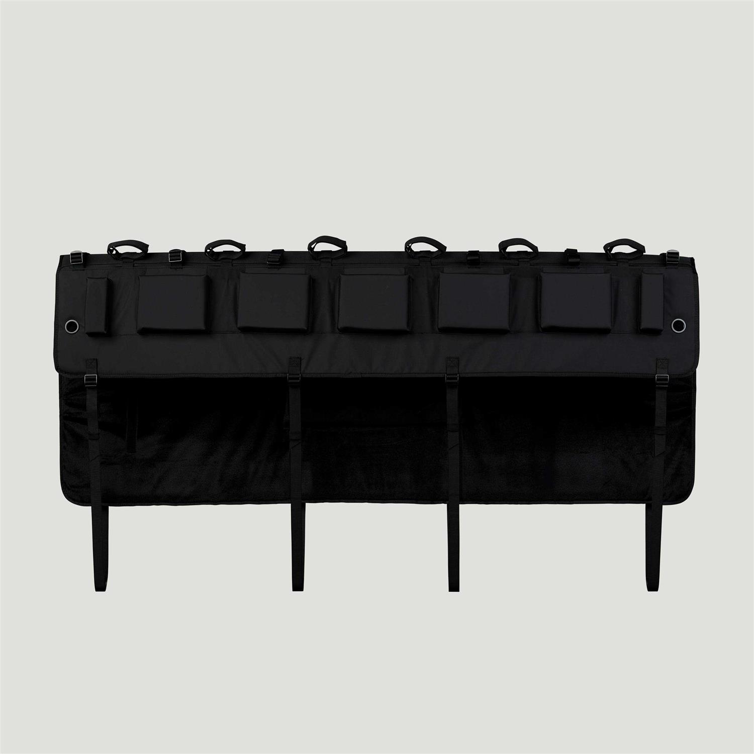 Meet the new fail-safe for your tailgate, featuring padded protection for your most prized possession. With durable PVC tarpaulin and a microbrushed inner lining, the FOX Overland pad is designed to keep your truck and bikes clean and secure. Raised bumpers (reinforced with high density foam) keep down tubes secured in place to minimize frame contact. Each pad comes with two strap extenders for eMTBs. Fully adjustable rear opening to maintain function of your backup camera and keep your tailgate handle accessible at all times. Durable PVC tarpaulin on the outside and a micro-brushed inner lining ensure your tailgate is protected from cosmetic damage. Every size of Overland features cinch straps to adjust the exact height and width of your truck’s tailgate.