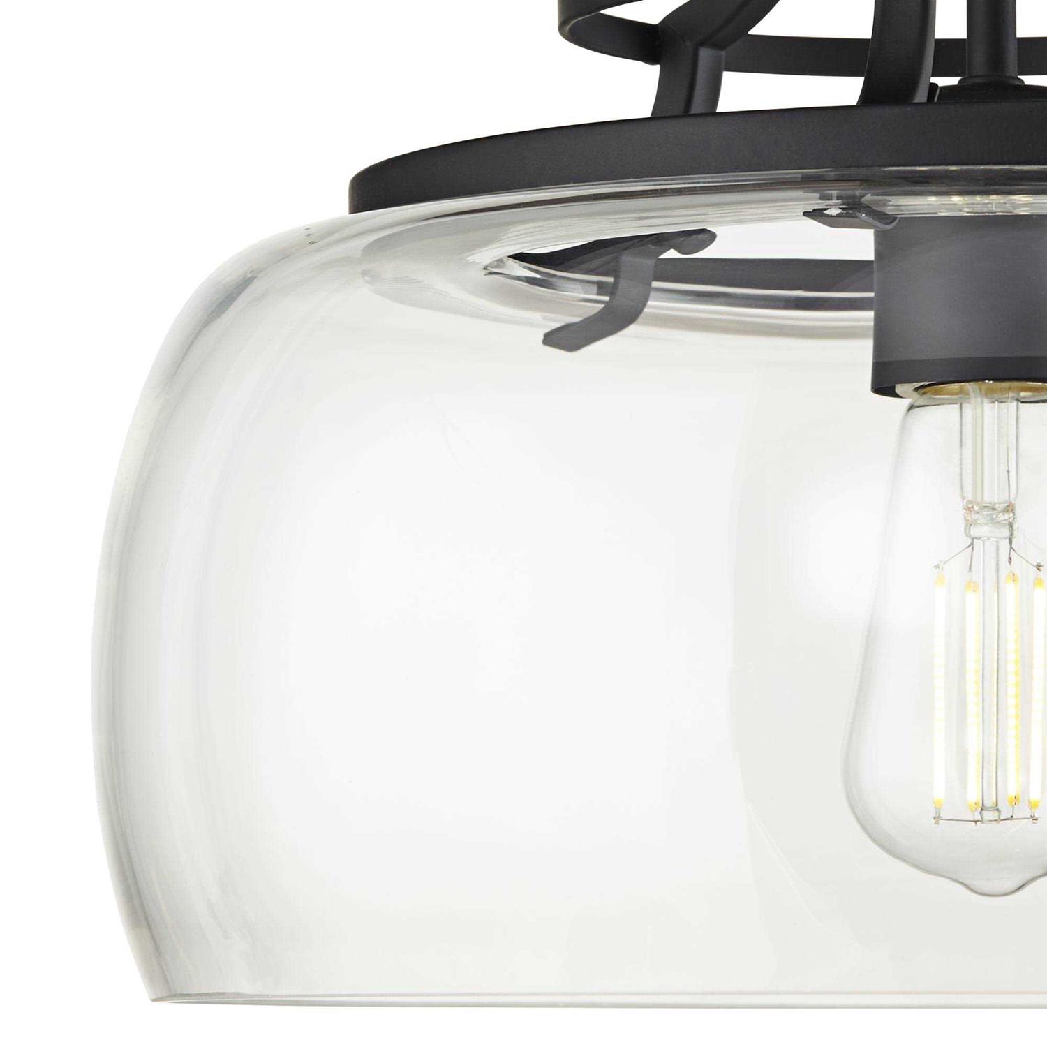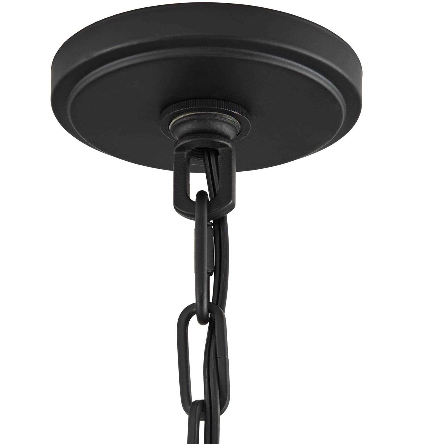 This Franklin Iron Works design offers a modern interpretation of a classic urban-industrial style. It comes in a handsome black finish and features a prominent round clear glass shade. The mouth-blown glass has a few pinprick bubbles that add to the vintage look and feel. As an added bonus, this pendant light comes with an Edison style light bulb that’s sure to add a nostalgic glow.