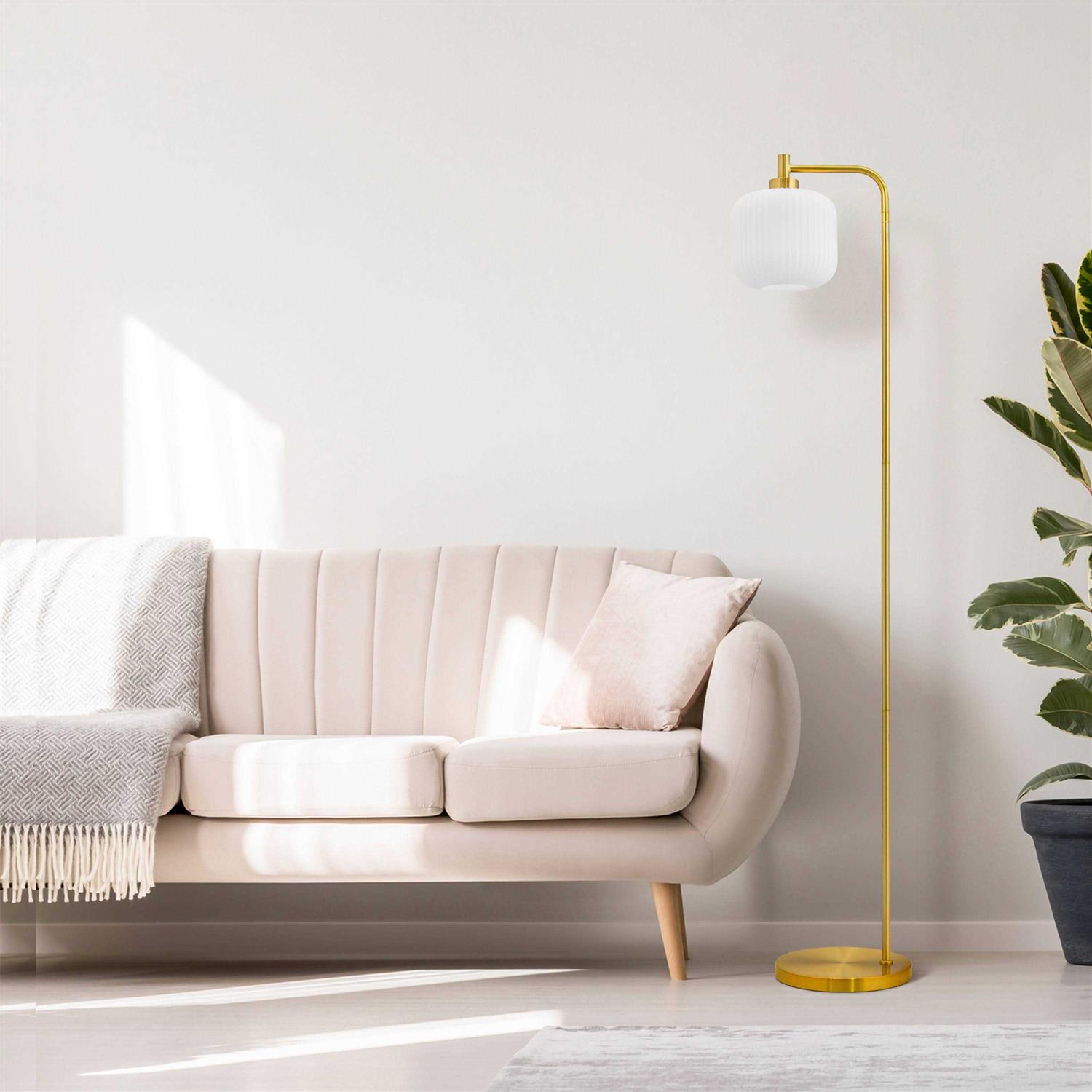 This 63″ H Wyatt White Globe Shade Floor Lamp from River of Goods will make a standout addition to the lighting in any space in your home. Showcasing a gold-tone metal cylinder base, a long candlestick stem and a white glass globe shade, the lamp exudes retro style. It requires one 40-watt E26 bulb (not included), and is also LED compatible. Best of all, the 90-inch cord with a foot switch allows for fuss-free placement and easy operation anywhere you like.