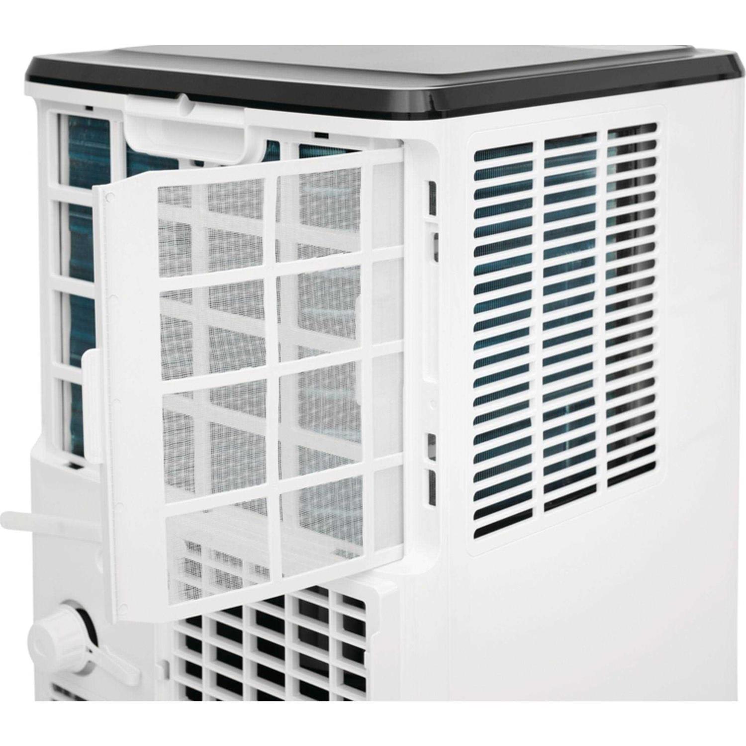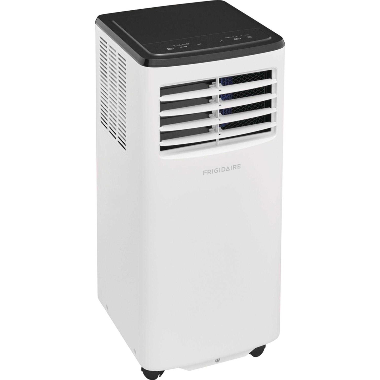 This Frigidaire 8,000 BTU portable air conditioner allows you to enjoy more cooling flexibility with its 3-in-1 design and technology. It offers two different fan speeds plus dehumidifying Dry Mode to keep your room cool and comfortable while also removing excess moisture from the air. Easily move this compact, lightweight air conditioner from room to room using caster wheels, providing cool air wherever and whenever you need it. The easy-to-clean washable filter captures dust from the air and keeps your conditioner working efficiently. There’s no need to keep track of filter changes; the Clean Filter Alert will notify you when it’s time to clean your filter. The programmable timer allows you to customize operation times to fit your schedule for immediate comfort when you get home. You can also enjoy maximum comfort and quiet operation throughout the evening hours. With Sleep Mode, the temperature gradually increases a few degrees over the course of the evening. Keep your home cool and comfortable with Frigidaire.