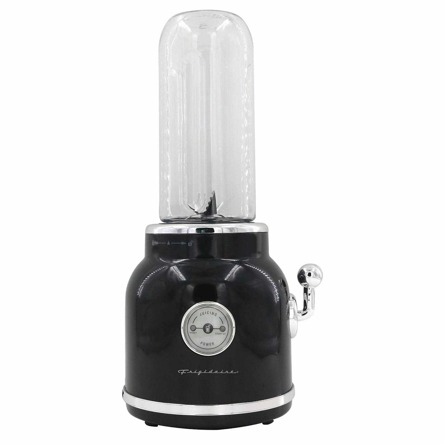 The new Frigidaire ESMM100 Retro Smoothie Maker is a retro style personal mixer with a classic looking function dial. The powerful motors offer 300 watts and 23,000 RPM. The ESMM100 makes smoothies, milkshakes, or protein shakes and comes with a BPA-free jar and a glass mason jar. There’s a chrome lever to start and stop the machine and a power indicator light goes on to let you know machine is ready to use. Heavy-duty stainless steel blades ensure you can crush ice and turn fruits and veggies into juices and smoothies, milkshakes, and baby food. The Frigidaire ESMM100 offers 2 speeds and is easy to clean.