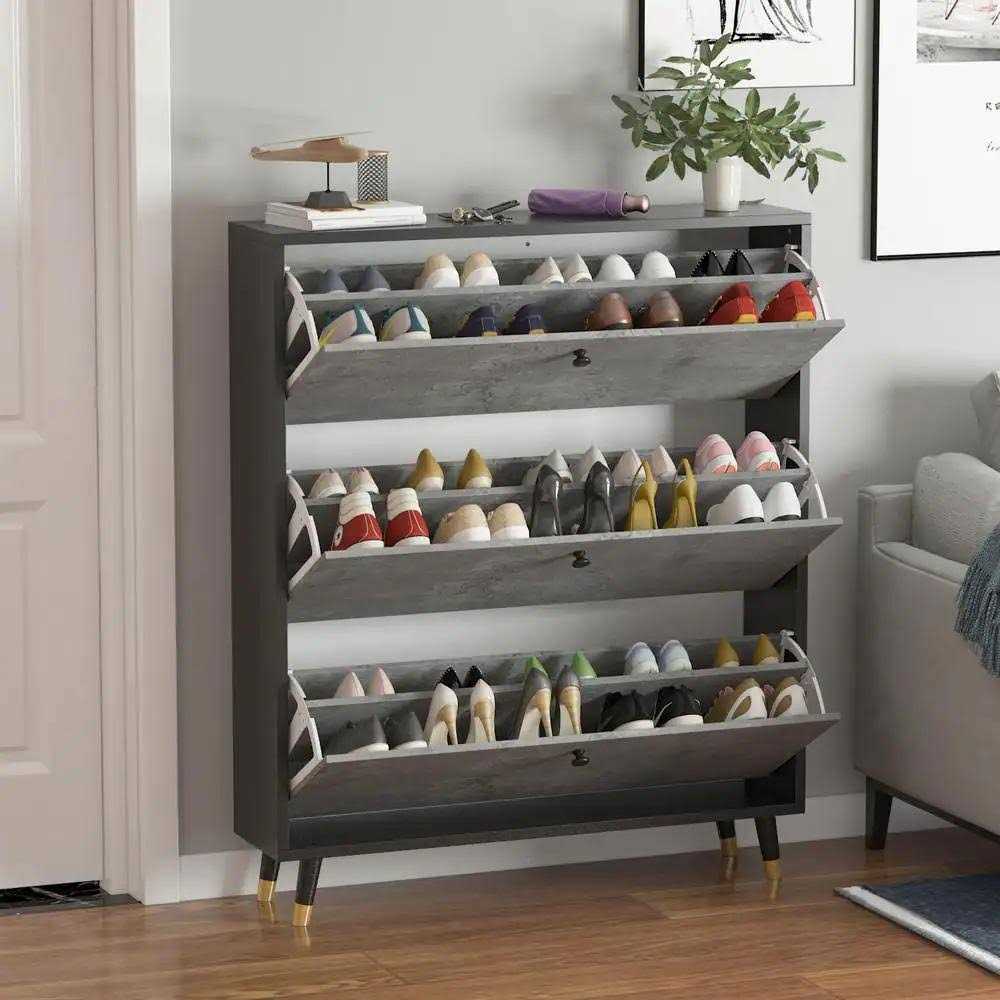 FUFU&GAGA 47.2 in. H x 39.4 in. W Gray Wood Shoe Storage Cabinet With 3 Drawers Fits up to 30-Shoes