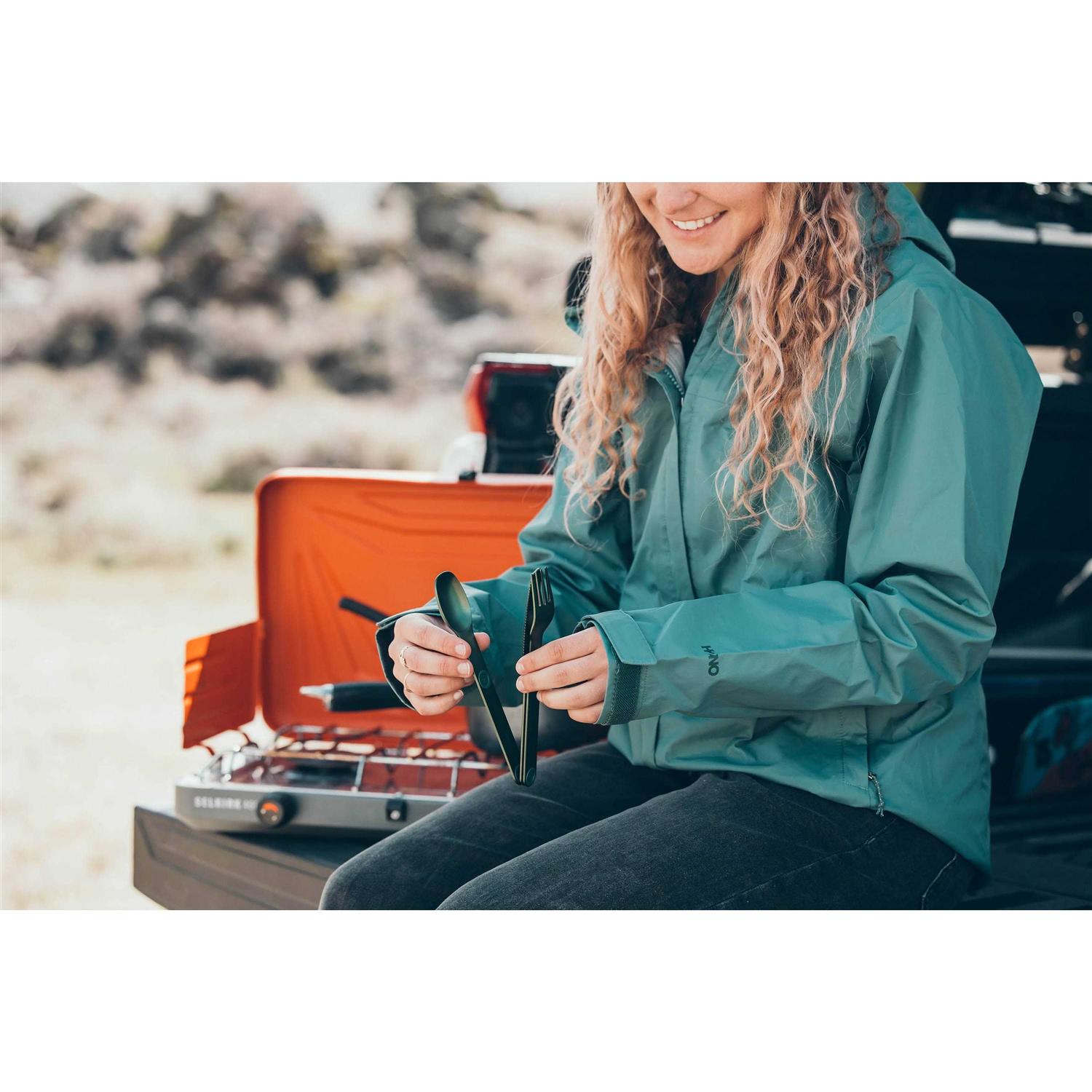 FullWindsor Magware Cutlery set blue – Extremely lightweight trekking cutlery setThe Magware cutlery set from FullWindsor has it all! Magnets, in particular. And these keep the knife, fork and spoon made from super-light aluminium (55g for the whole set!) nicely together when not in use. A functional case made from recycled polyester is included for transport.