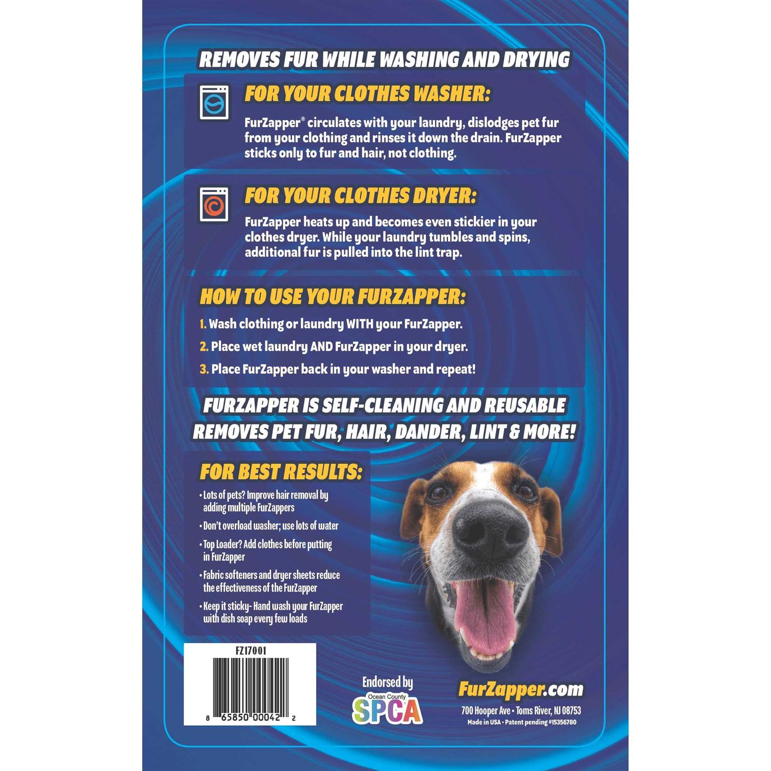 GOT PET FUR? ON YOUR CLOTHES? ON YOUR LAUNDRY? FurZapper removes pet hair from your clothing while you do your laundry! FurZappers tacky surface clings to pet fur, cat or dog hair, lint, dander and other debris on your clothes, bedding, jackets, dresses, blankets, sheets and anything that you put in the laundry. Better than Pet Lint Rollers or Washer Balls- Remove Pet Hair from your Laundry with FurZapper -Removes Pet Hair From Clothes and Laundry While You Wait -Prevents Re-CLEANING Your Laundry- Saves on Detergent, Water, and Time -TWO-PACK – Ideal for up to 2 Pets- Use both in ClothesWasher and Dryer
