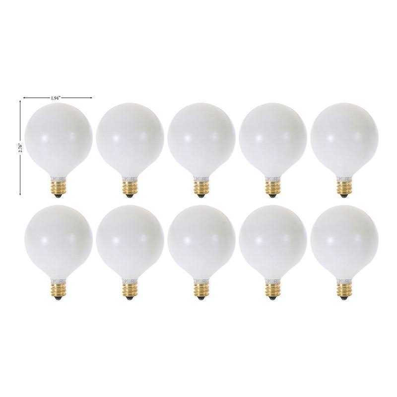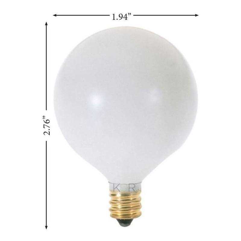 25 Watt – White G16.5 Decorative Mini Globe Bulb With A Candelabra E12 Screw in BaseThese 25G16 mini globe light bulbs are the perfect shape for your wall sconces, chandeliers, makeup mirror or other decorative light fixtures that have a small base (E12). Dimmable so you can change the mood or brightness depending on your application.,Bulb Diameter: 1.94 InchesBulb Length: 2.76 Inches