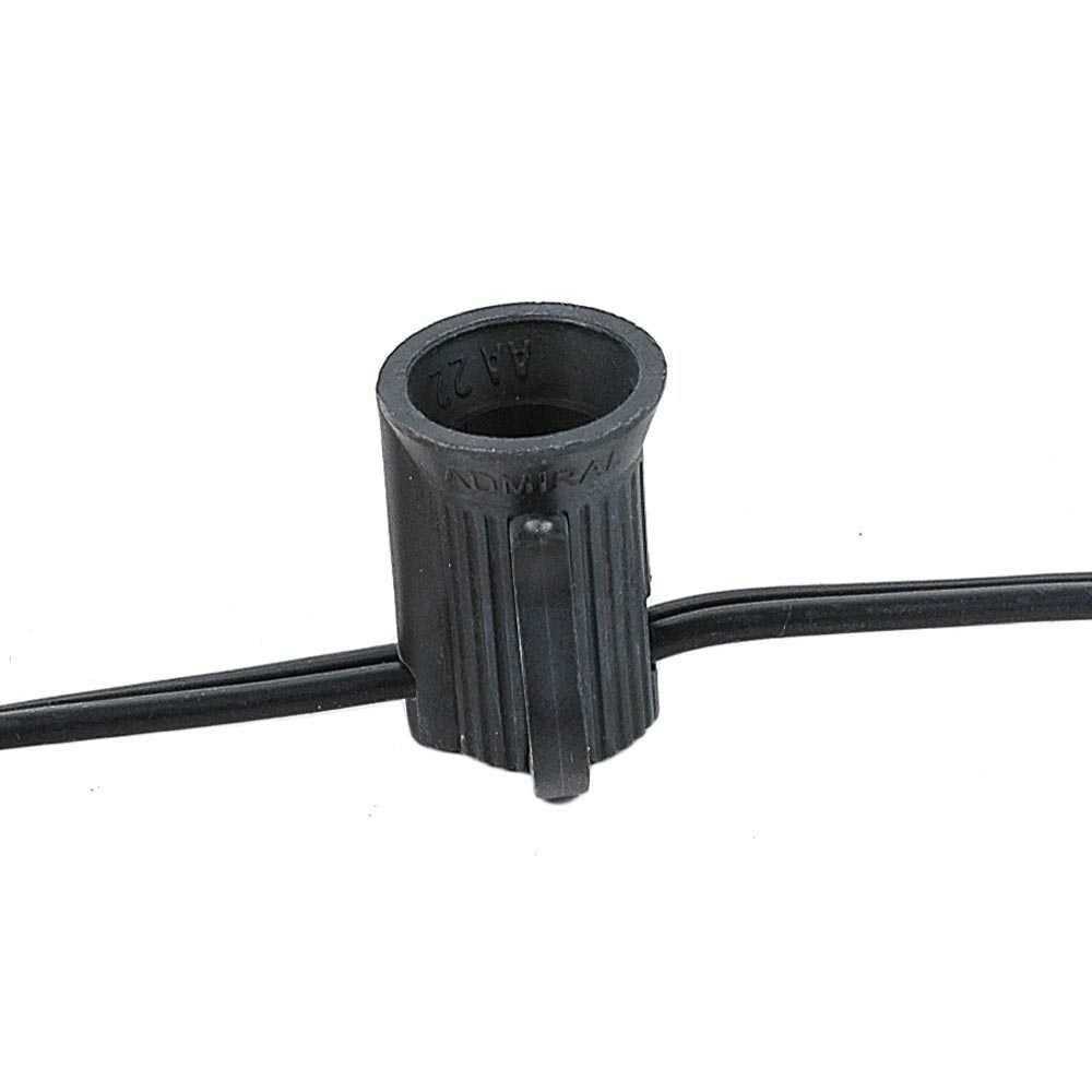 Buy Novelty Lights orange 100 G40 globe string light sets to illumiate your outdoor garden, patio, deck, yard, or special event space. Each set includes 125 round G40 globe bulbs and a 100 foot heavy-duty black wire stringer with 100 sockets that are spaced 12″ apart. With 125 bulbs, these sets include 25 extra bulbs at an excellent value. These orange G40 globe string light sets have long-lasting 3000 hour bulbs and are on a durable 20 gauge black wire. All of our G40 light strings use patented Admiral Brand sockets. These durable and heavy duty light strings will provide you with years of maintenance-free use.