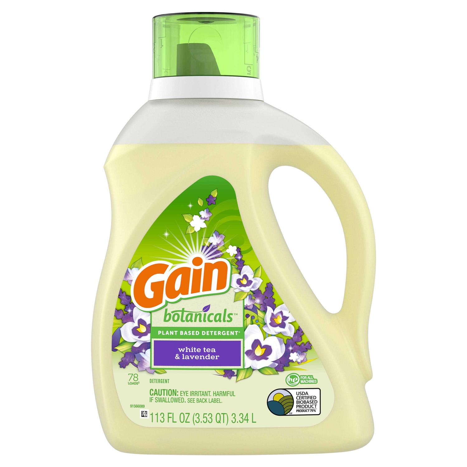 Gain Botanicals White Tea and Lavender is a plant-based liquid laundry detergent that’s specially formulated to smell irresistible and be gentle on your skin. Made from 65% plant-based ingredients with zero dyes, phosphates or brighteners, Gain Botanicals is bursting with the irresistible scent mix of crisp white tea and soothing lavender. Gain’s first entry into the “natural” laundry detergent category, Botanicals White Tea and Lavender is designed to work in both regular and high efficiency washing machines, delivering the same results of an outstanding clean and a lasting scent on your clothes.