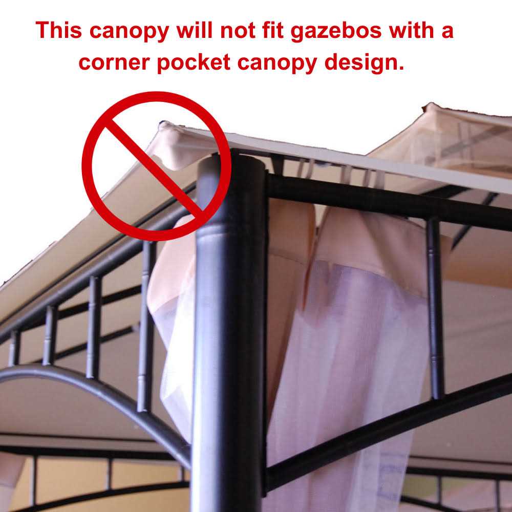 Enjoy spending time outdoors with friends and family with the Garden Winds Replacement Canopy Top. It is made from high-quality materials for reliability and a long life. This gazebo replacement canopy top is designed to provide a general fit, not a custom fit. The unit is compatible with most first generation square 10′ x 10′ models. This two-tier gazebo canopy replacement gives you a pleasant refuge from the hot sun.