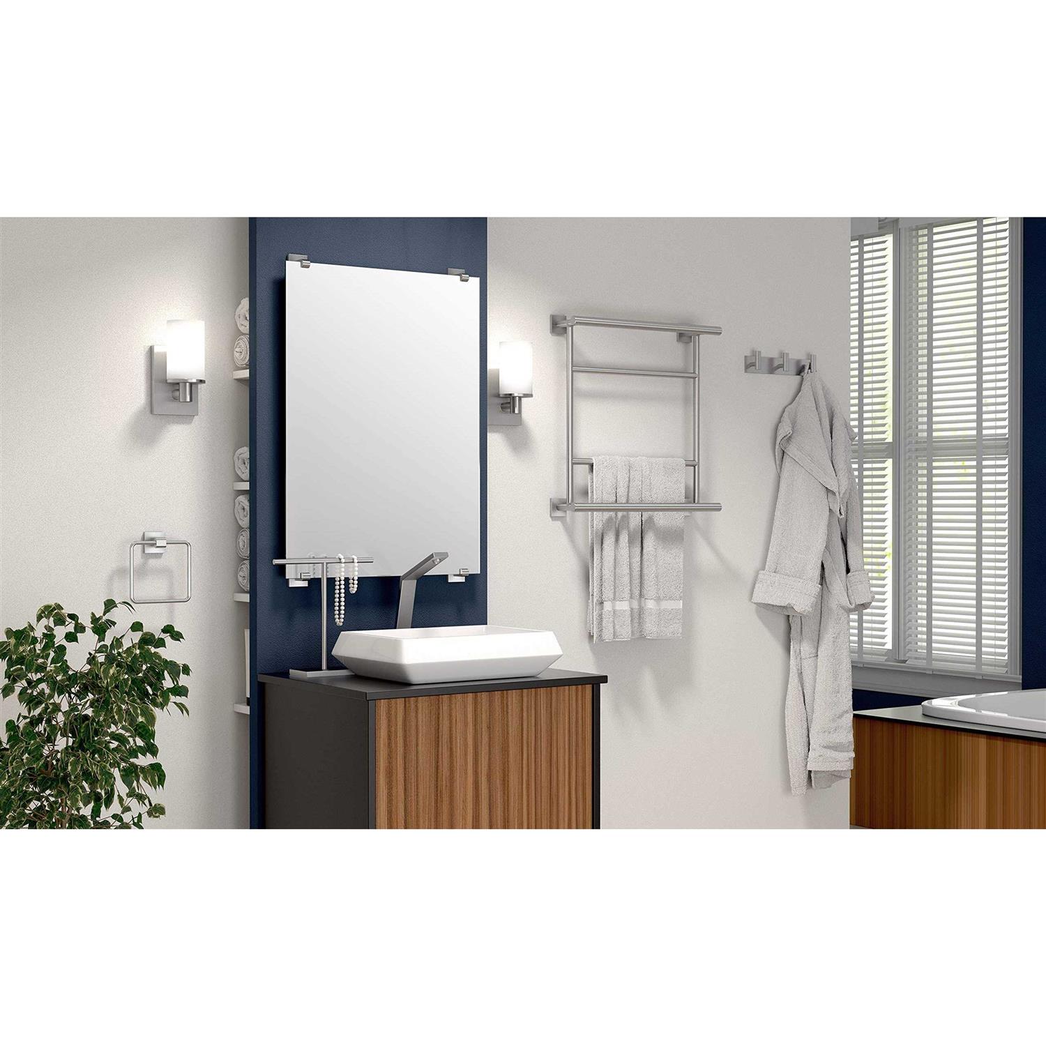 Beautifully display robes and towels anywhere in your bathroom with our contemporary double prong robe hook design. Also great for hanging clothes, hats, keys, jewelry, or anything you wish. Provides space for two towels or robes. Built for decades of reliable use. Installation is made simple with innovative mounting hardware. Available in a variety of styles and finishes.