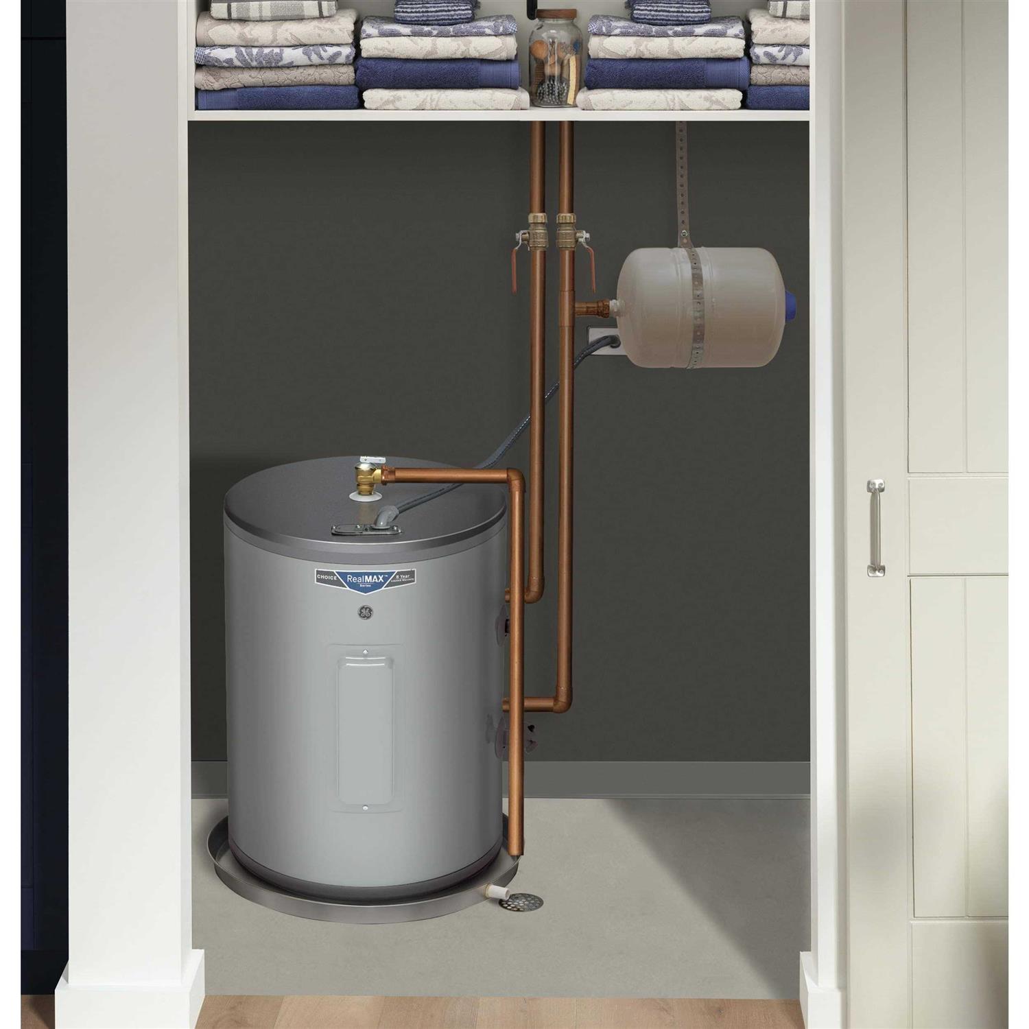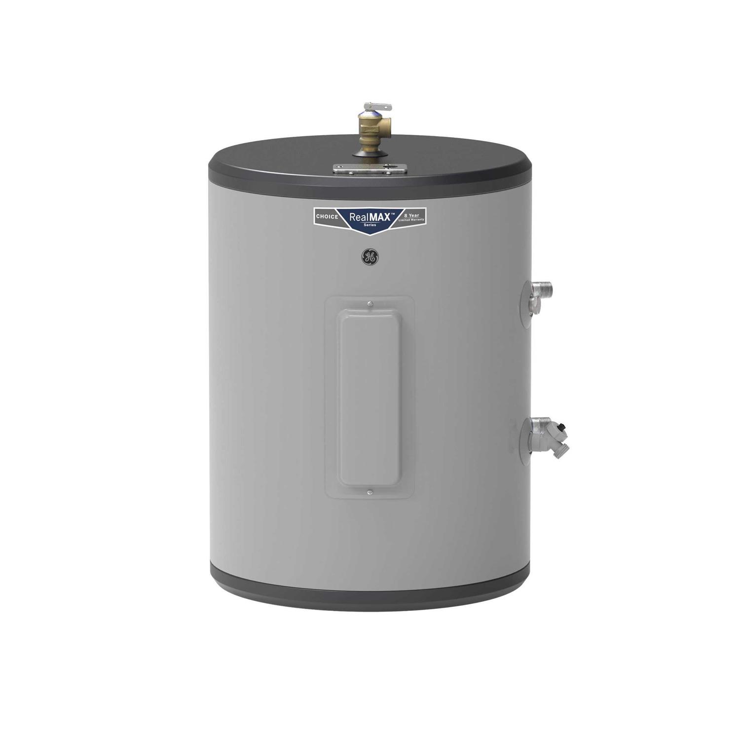 GE RealMAX Electric Water Heaters offer best-in-class performance delivering excellent efficiency and high first hour ratings. With the RealMAX series of water heaters, users reliably get the true hot water capacity stated on the unit. Features The lowboy configuration makes the most of tight spaces with a water heater that fits where height is a concern. Provides hot water for the whole family of 1 to 2 persons. 5.5 kW heating elements quickly increase water temperature for hot water when needed. Replace your old water heater quickly and easily using standard water and electrical connections. Durable design of the anode rod offers long-lasting protection against corrosion. Rust-proof construction of the drain valve can be counted on to provide long-lasting service. The adjustable thermostat changes temperature to a desired setting.