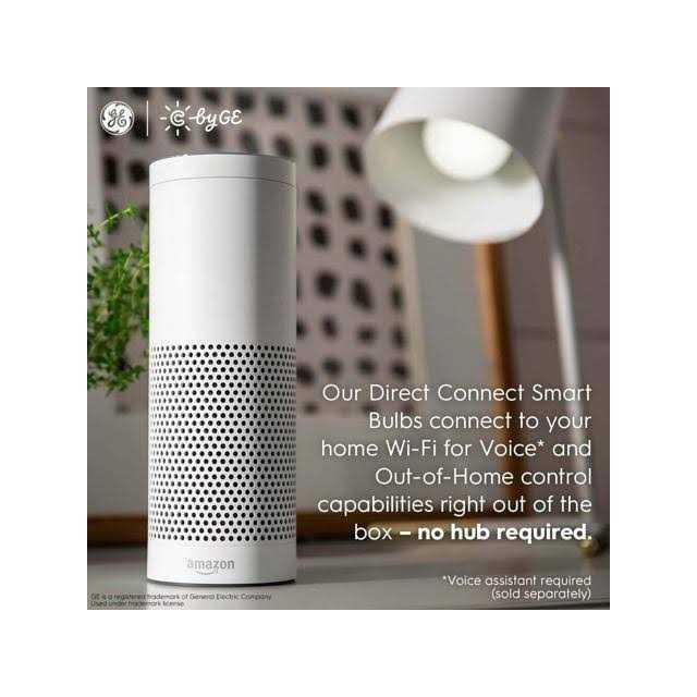 Use C by GE Soft White Smart Bulbs to set the perfect mood dinner, working from home, movie night, and everything in between. Get added confidence by scheduling your lights so you never coming home to a dark house. With voice control and the ability to control your lights away from home, you’ll get the added convenience of controlling your lights while away on vacation or when your hands are full. Simple set up Works right out of the box using the C by GE app—no additional hardware needed. Voice control with Amazon Alexa and the Google Assistant Directly connect to your Google Assitant or Amazon Alexa for voice control of your lights. Out-of-home control Get lighting control away from home through the C by GE app – no hub or bridge needed. Create custom schedules Automations allow you to schedule when lights are on and off, including customized schedules for different days of the week. Set scenes for every occasion Set scenes like dimmed light for movie time or bright lights when you get home. Optimal daytime light Dimmable warm, soft white light that feels just right. Control bulbs individually or group together Control each light bulb individually or group bulbs together so that you can brighten, dim, turn on and turn off your lights simultaneously. Whole-room control Pair your Soft White Smart Bulbs with other C by GE devices to get whole room lighting control. Mobile control from your smartphone or tablet The free iOS- and Android-compatible app lets you adjust brightness and turn lights on and off without leaving your seat or bed. Long lasting and low energy use LED technology uses about 84% less energy and lasts 15 times longer than a 60-Watt incandescent bulb while providing nearly the same light output. Installs easily into your existing table and floor lamps The traditional A19 bulb shape and size fits medium base sockets in open fixtures designed for 60-Watt incandescent A19 bulbs.