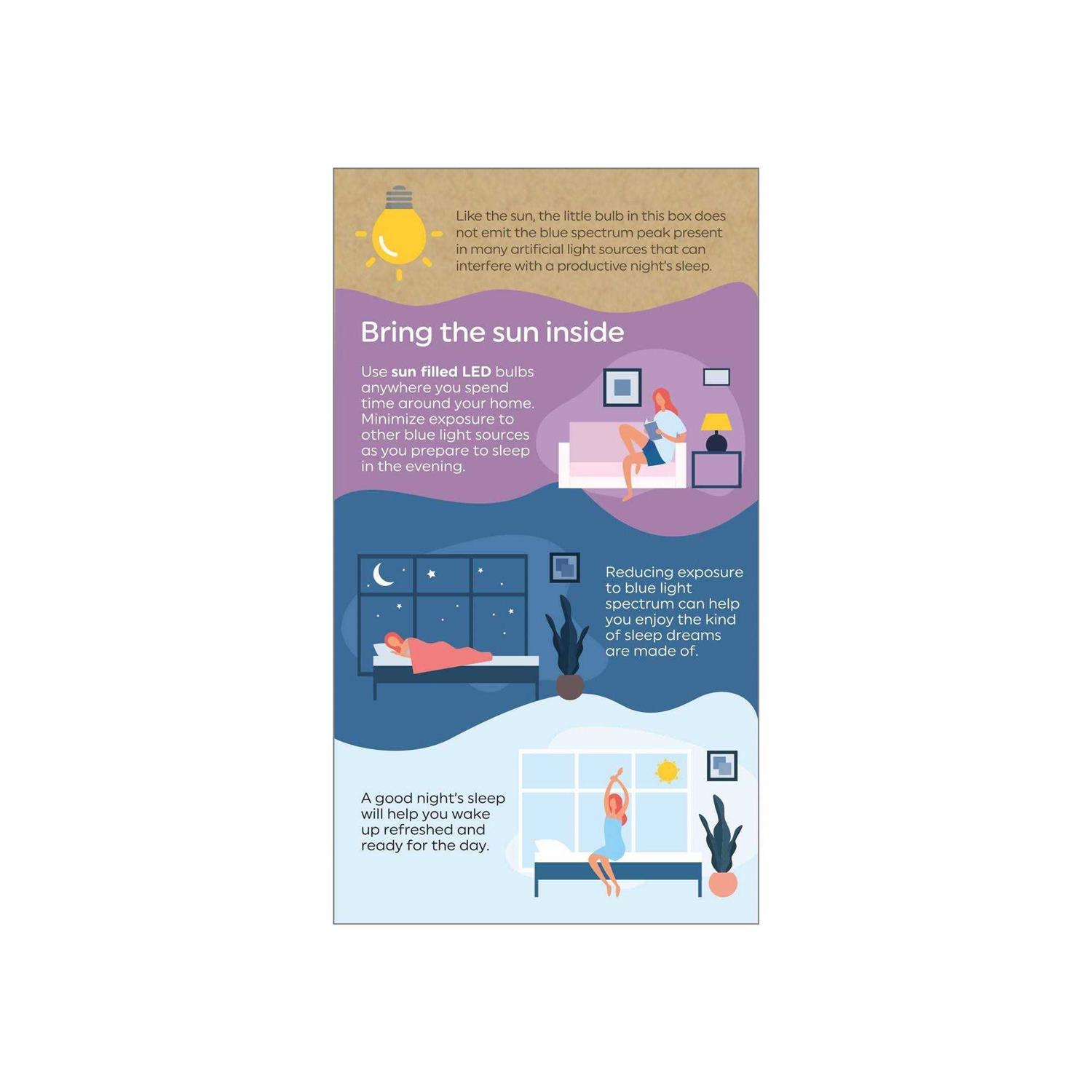 The light bulb was created to be our closest to natural sunlight. Sun Filled LED light helps maintain your circadian rhythm the bodys natural sleep-wake cycle to help you sleep well and wake more rested. Like the sun this bulb does not emit the invisible blue light spectrum peak present in many artificial light sources that can interfere with a productive nights sleep. Use them almost anywhere in place of other bulbs and shine on.