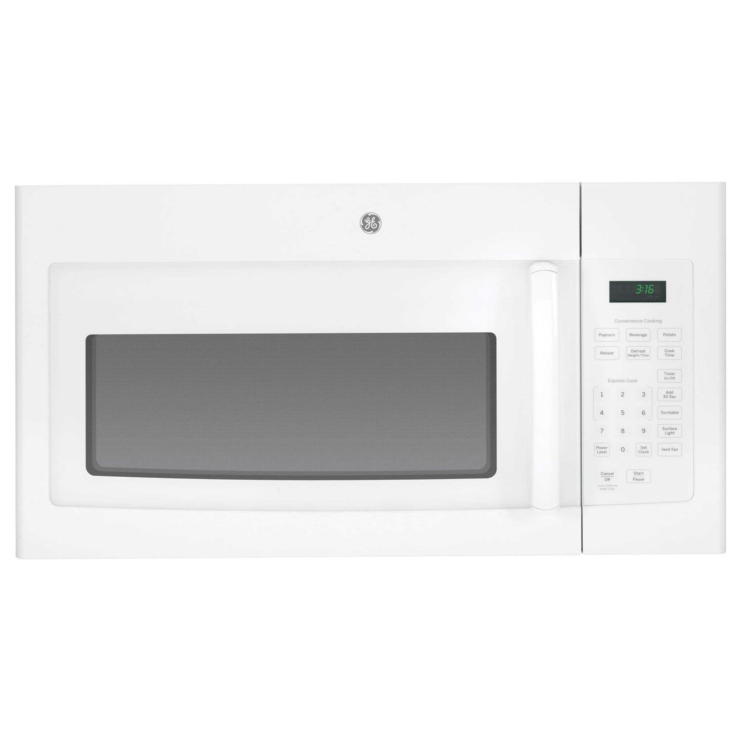 1000W of cooking power and 10 power levels Thoroughly cook food for tasty results. Auto and time defrost adjust power levels and defrosting times To efficiently thaw frozen items. One-touch settings offer flexible cooking options Settings include popcorn, beverage, potato, reheat and up to 6-minute express cook. Add-30-seconds option for versatile use. Stoppable glass turntable rotates your food To ensure even heating. 2-speed exhaust fan circulates air at up to 300 cfm To remove smoke, steam and odors. Cooktop light illuminates the cooking surface below So you can see what you’re cooking on the stove. Oven window and interior light let you visually monitor the progress of your food. Electronic touch controls Ensure quick and easy operation.
