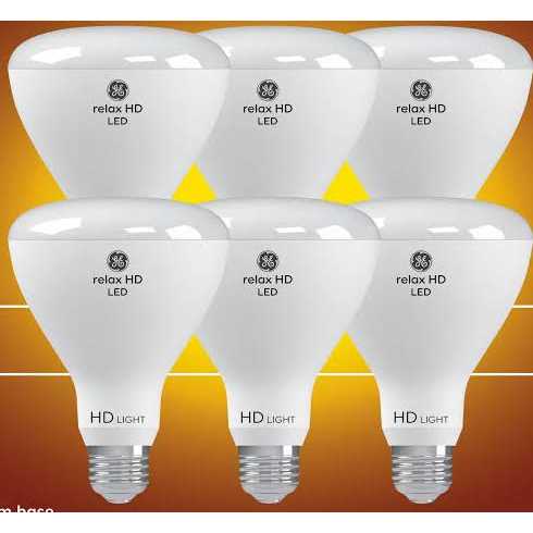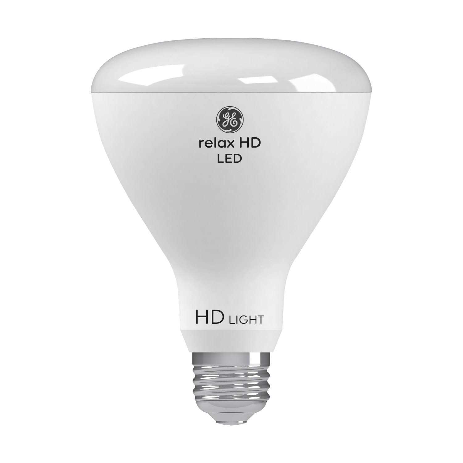 GE relax HD soft white LED 65-Watt replacement BR30 indoor floodlight bulbs provide enhanced color contrast and boldness versus standard LED bulbs. The high definition soft white light helps create a comfortable, cozy light that’s ideal for bedroom lighting, foyer lighting, family rooms and dining rooms. They’re dimmable and illuminate your home with soft white light. The floodlight design casts a wide beam of light. These are great for frequently used fixtures—GE relax HD soft white LED bulbs are rated to last three as long as GE basic BR30 LED bulbs and save 154 dollars on energy costs over the bulb’s life versus a 65-Watt BR30 incandescent bulb. Unlike CFL bulbs, GE LED HD bulbs feature enhanced color, instant full brightness and are free of mercury. Replace CFL, halogen and incandescent light bulbs with GE relax HD soft white LED BR30 (3-3 with 4-inch diameter) indoor floodlight bulbs in indoor track lighting and recessed lighting fixtures, including damp locations.