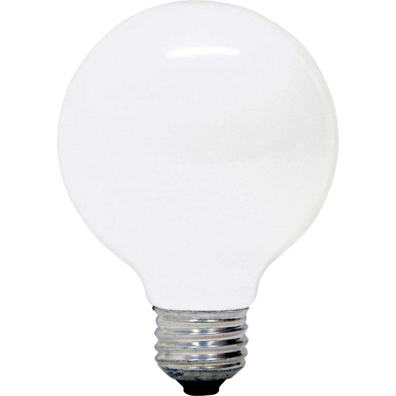 This 40 watt decorative globe bulb has a medium base and is white. The diameter is just over 3″. The bulb has a 1,500-Hour rated life and an overall length of 4-1/2″.