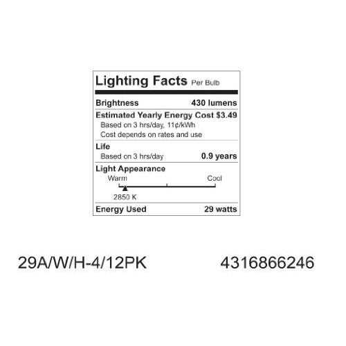 GE energy-efficient soft white bulbs have the same look, feel and nearly the same brightness as traditional incandescent, but with one big change: it now pays you back! These bulbs use 28% less energy than regular incandescent, helping you save money on energy costs. Use general purpose GE energy-efficient soft white bulbs in common household fixtures like table lamps, floor lamps, enclosed ceiling fixtures and bare lamp sockets.