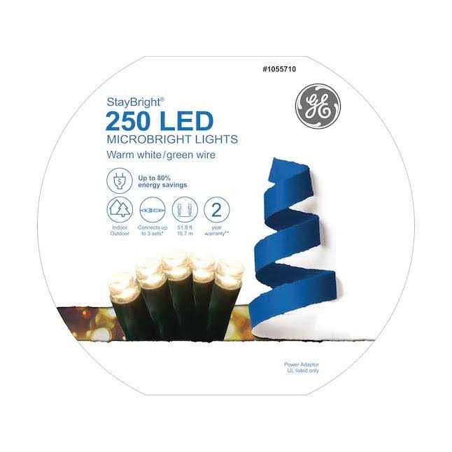 Add sparkle to your holiday decor with these GE StayBright string lights! With 250 warm white microbright LED lights and a length of 51.8-ft, these electric powered lights are perfect for both indoor and outdoor use. The wall switch controlled lights have a corded power source with a voltage of 120v and power consumption of 10 W – 24 W. These energy star rated lights come with a green cord and IP44 rated protection. The string lights have 250 bulbs and feature WS2801 LED string/strip type. They are easy to install and will make your holiday theme stand out. Get these GE StayBright string lights for your Christmas display!