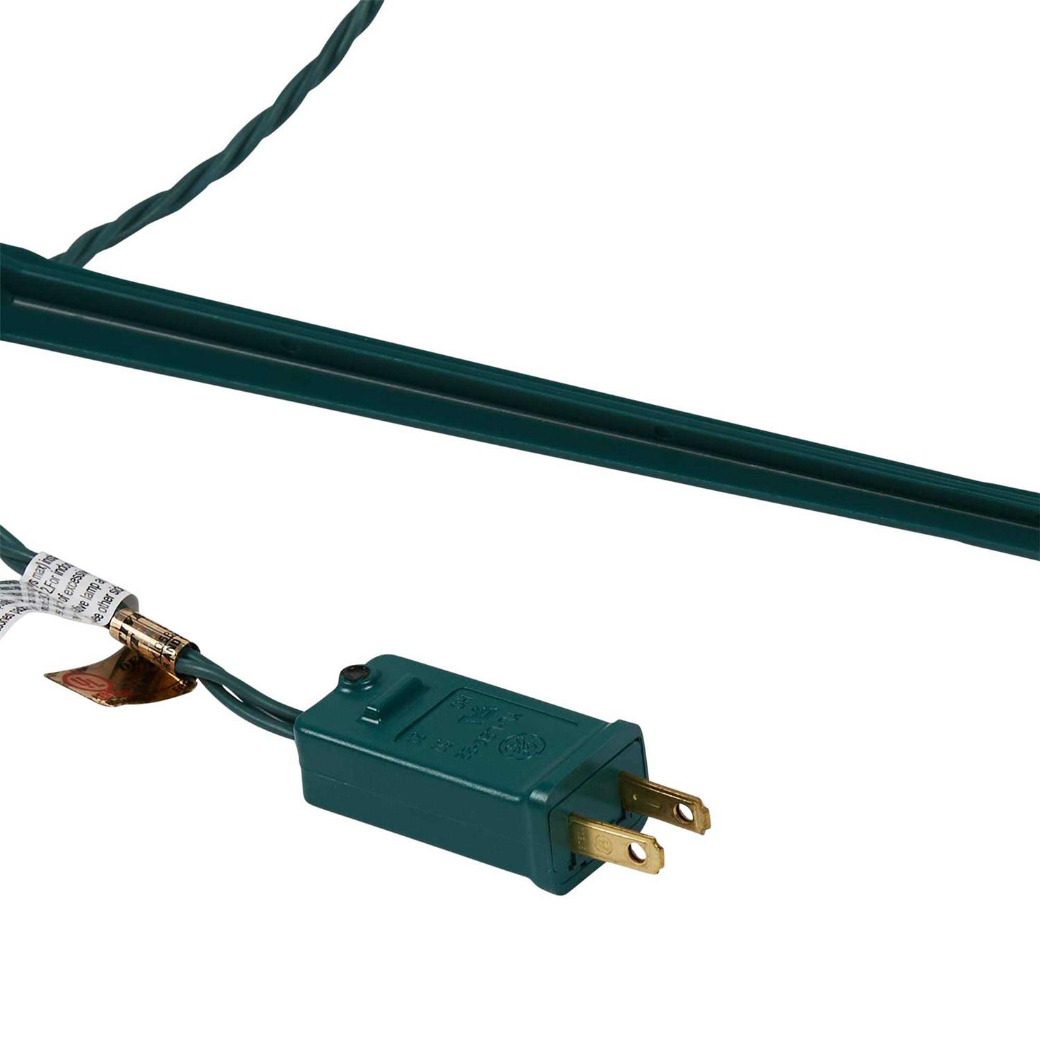 GE StayBright LED 4-count snowflake pathway light set with 52-count warm white lights. 24-Inch lead wire, 20-inch spacing, 4-inch end connector, 5-feet lighted length, and green cord set. Each snowflake: 9-inch tall, 13-count warm white LED lights, 10-inch stake.