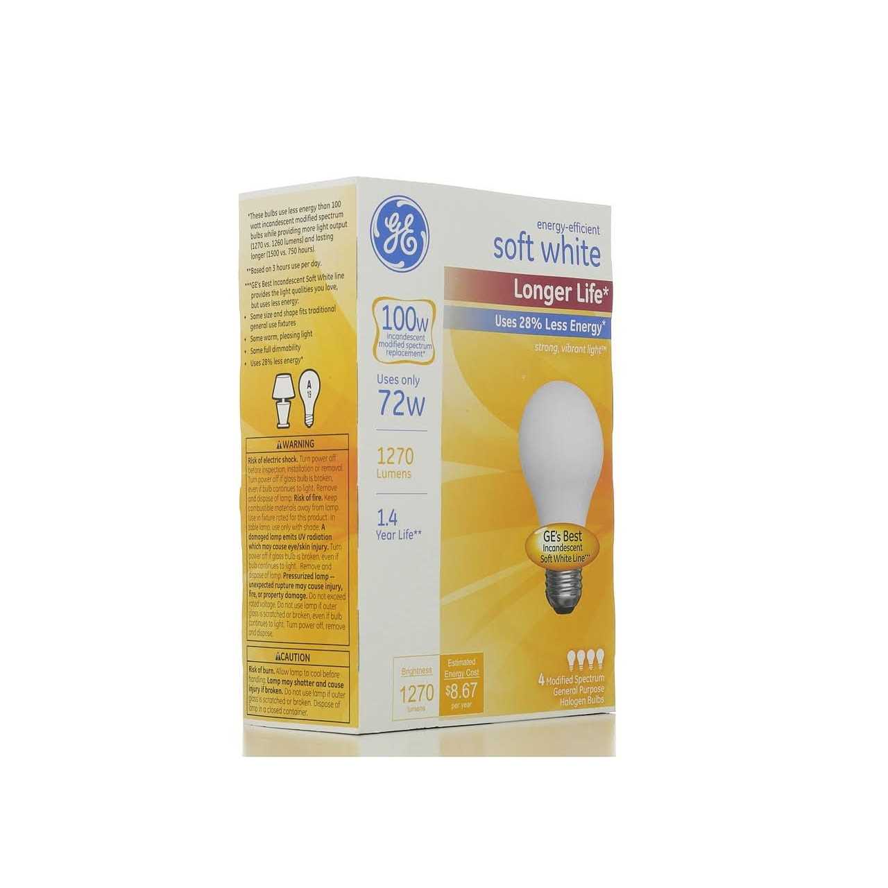 This halogen bulb is 72 watts with a medium base. It has an A19 shape like a standard incandescent. the bulb has a 1.4 year long life and is 4.3″ long. The bulb is soft white in color and saves energy by giving the equivalent lumens to a standard 100 watt incandescent. 8.67 Energy Cost (Based on 3 Hrs/Day at .12 per KwH). Rated Life: 1.4 Years Lumens: 1270 2800 Kelvin Soft White Color Temperature 72 Watts 8.67 Energy Cost (Based on 3 Hrs/Day @ .12/KwH). Medium Base Additional discounts apply for this item when purchased as Bulk.