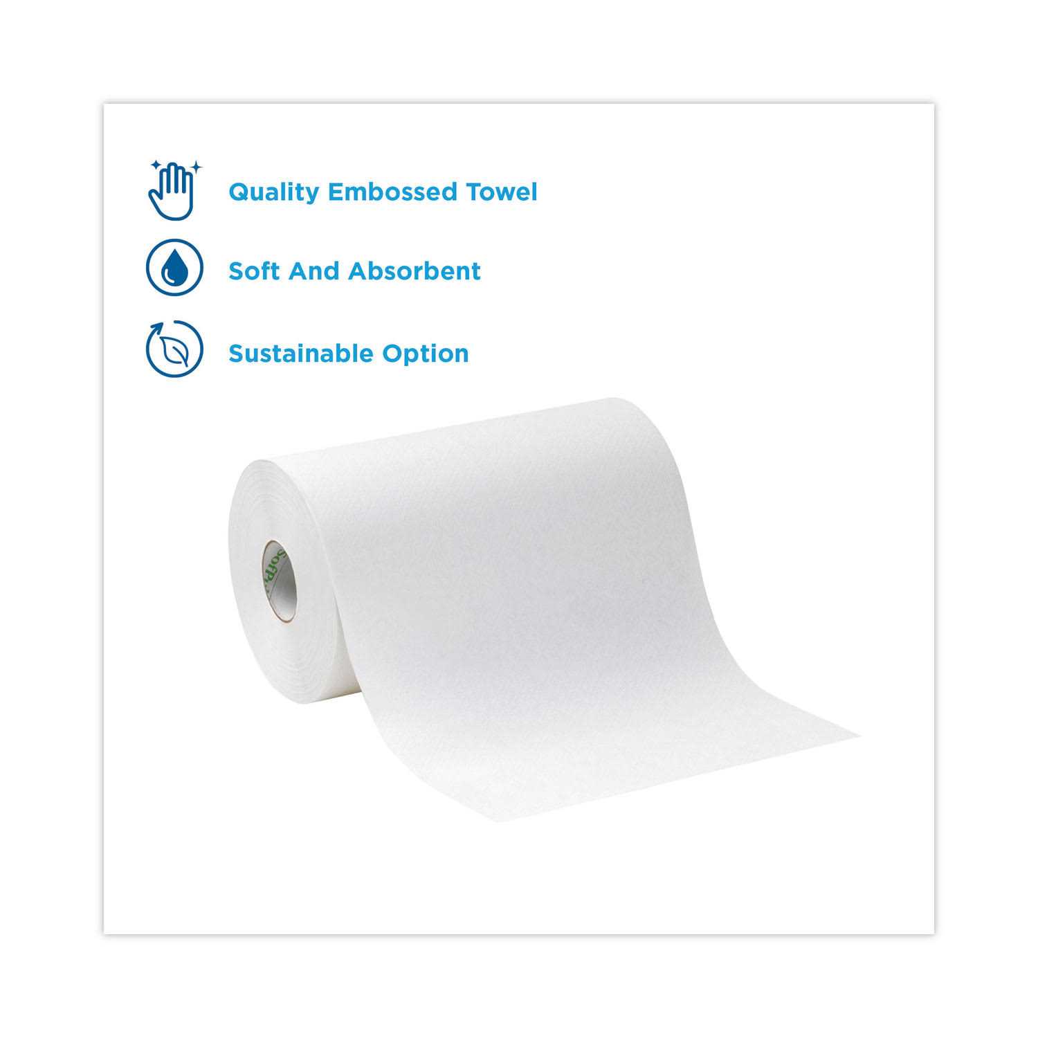 SofPull White Hardwound Roll TowelsDesigned primarily for hand-drying in washrooms when combined with SofPull dispenser (GPC584-70 and GPC584-87, sold separately). Providing a combination of durability, reliability, quality, softness and absorbency. These hardwound roll towels offer the quality you expect to find in office break rooms, doctor offices and any area where you want to make a good impression. Each roll is 9 inches wide and 400 feet in length.