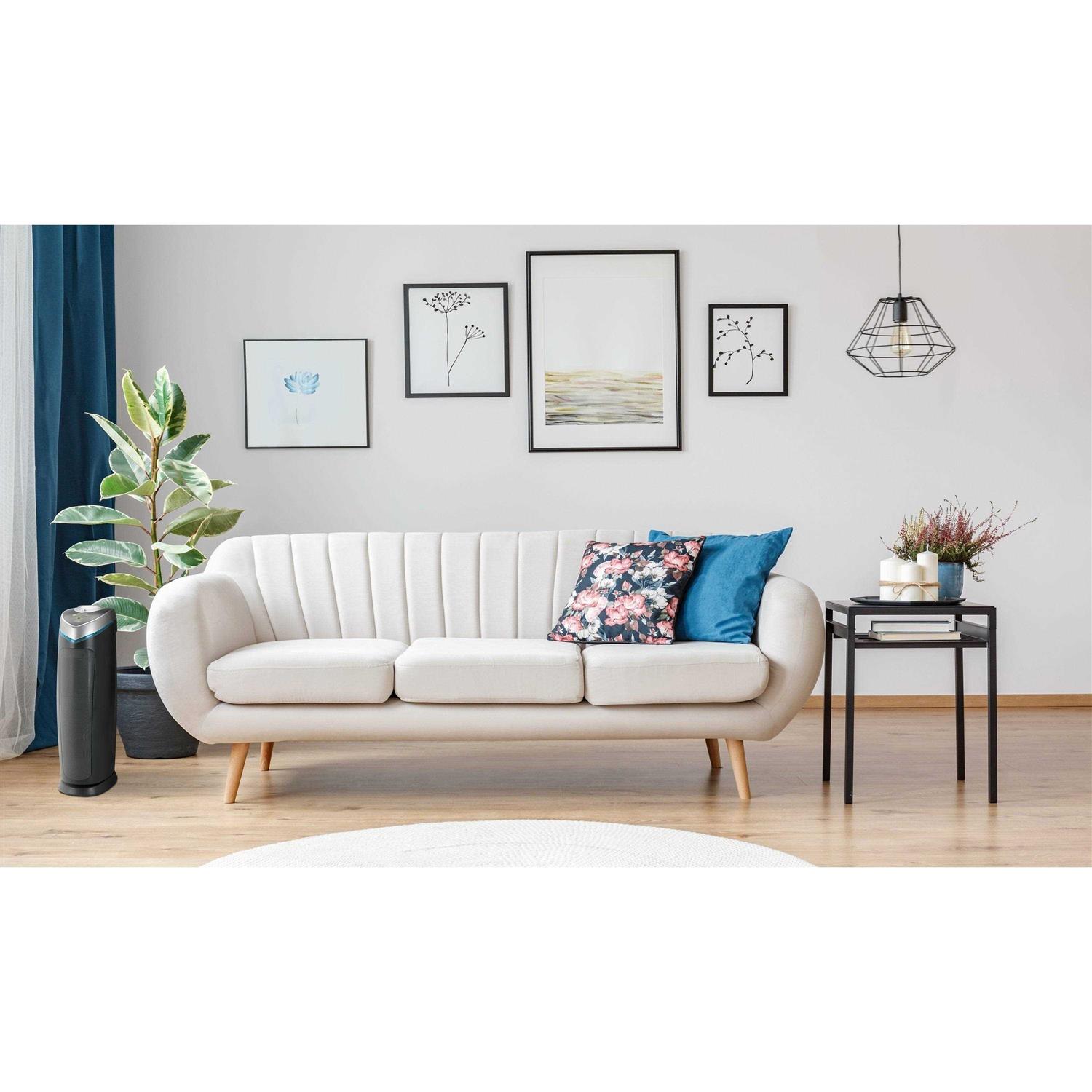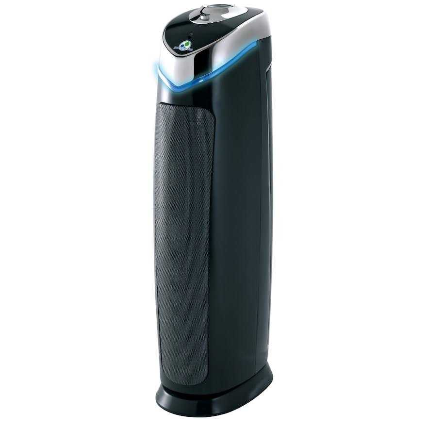 It is perfect for allergy sufferers. With a True HEPA filter, it captures 99.97% of dust and allergens as small as 0.3 microns in size. According to the American Academy of Pediatric Allergy and Immunology, doctors recommend HEPA air filtration to reduce exposure to indoor asthma triggers. More than just a filter, the UV-C light kills germs, while the charcoal filter captures odors. CADR Rated 100+ and standing 22″ tall, it is lightweight and ideal to use in medium sized rooms. Includes a UV-C control and a filter change indicator. Choose from 3 speeds, including a low speed that runs ultra-quiet.