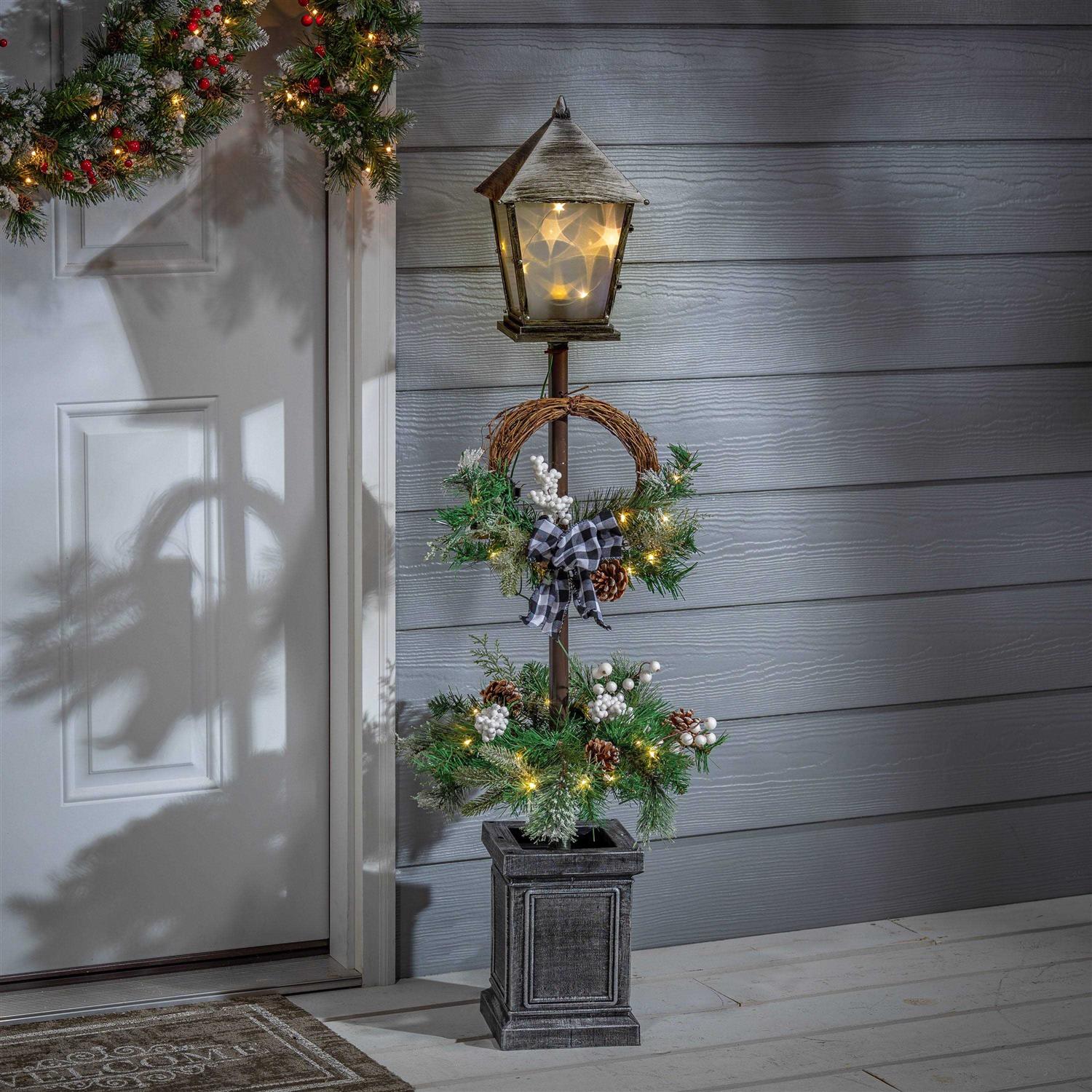 Gerson International 4′ Pre-Lit Mixed Pine Lantern Pole Porch Tree