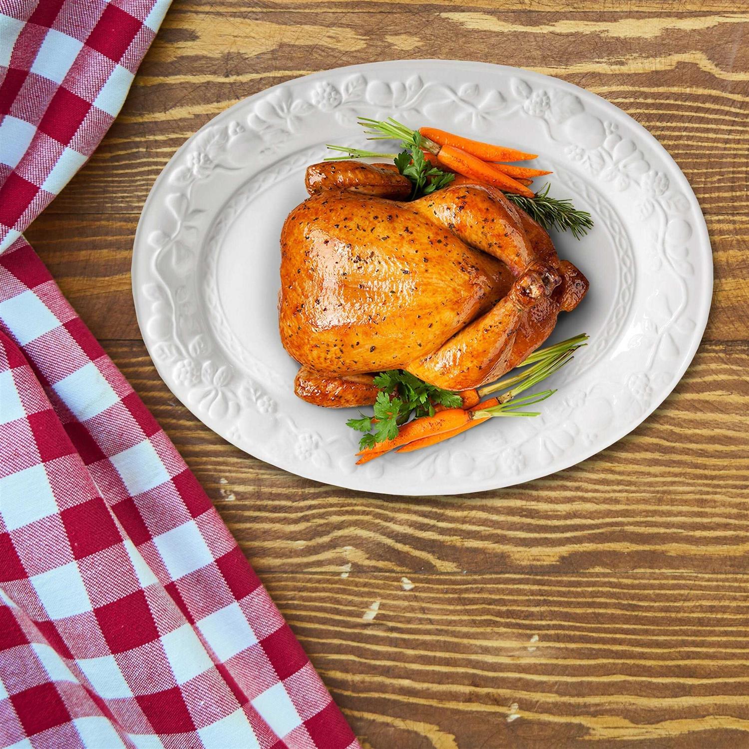 This Gibson Home Fruitful Oval Ceramic Platter is a beautiful addition to any kitchen. Crafted in China using traditional ceramic production techniques, it features a glossy finish and a painted backstamp. Measuring 18.75 inches in diameter, this platter is perfect for serving up your favorite fruits or other delicious treats.With a white color and a fruit pattern, this platter is sure to impress your guests at your next dinner party. It features one compartment, and is both hand washable and original. This fruit-themed platter is part of the Fruitful product line and comes boxed for easy gifting.