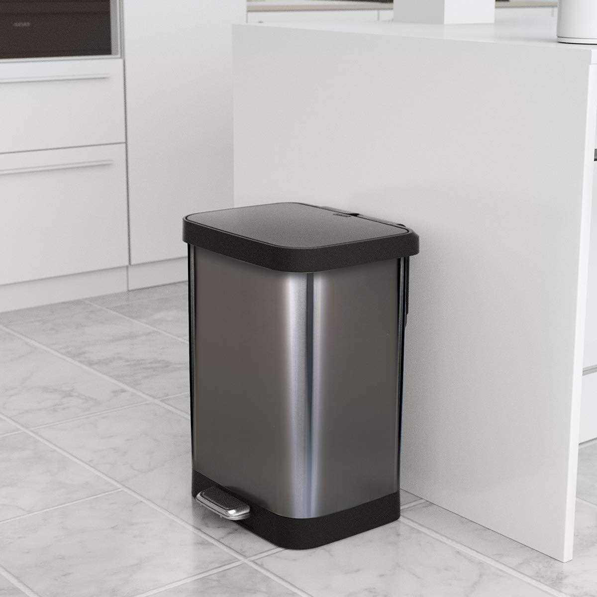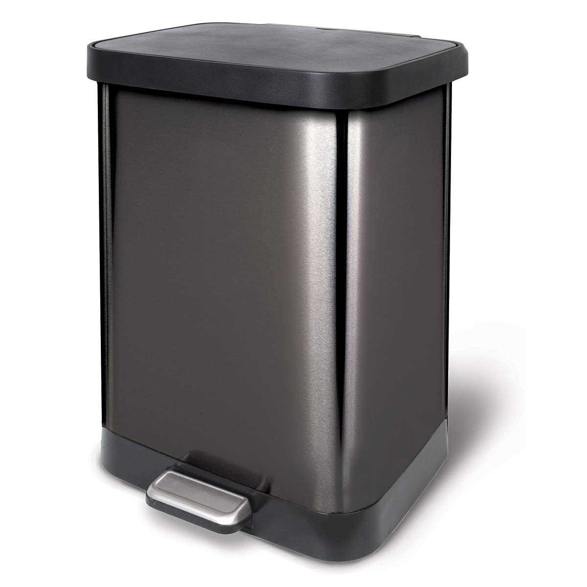 Glad Pewter Stainless Steel Trash Can combines high quality design with premium functionality for an easy-to-use garbage bin that will become a staple in your home, kitchen, or office. Specially designed with Clorox Protection of the Lid to thoroughly trap odors inside of the can and prevent bad smells from escaping while the lid is closed. Made for hands-free use, this garbage can is activated by a simple step on the foot pedal. The soft-close lid lends a controlled open and close every time for smooth use with zero noise.