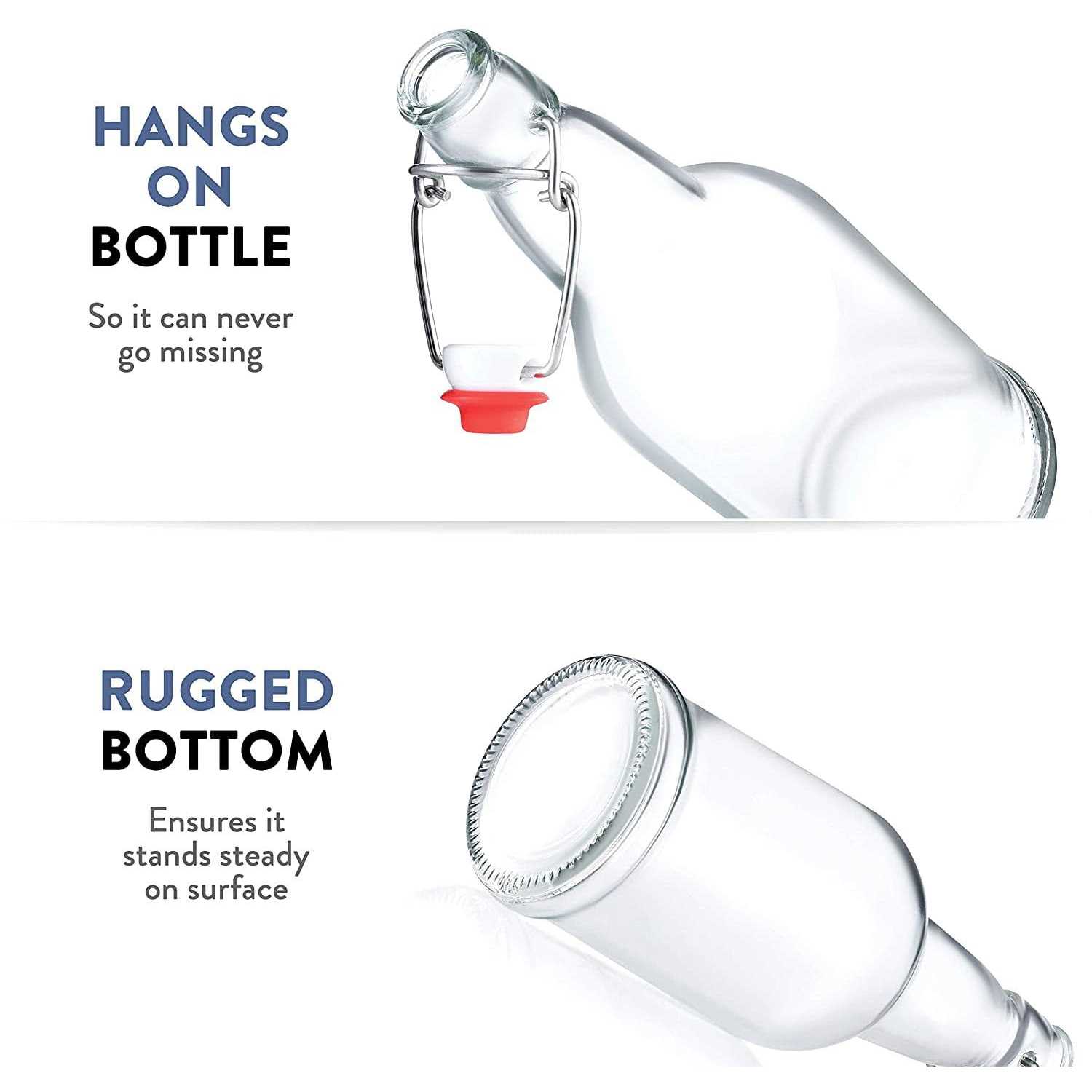 Superior Bottle- Crafted of heavy-duty glass, this bottle is of the best quality out there. The rugged bottom ensures it stands steady on surface. Clear, with the original Grolsch design, it looks beautiful on the table, while being supremely functional and durable. Bottling Solution-The perfect flask for storing homemade drinks of all kinds. Ideal for carbonated drinks as it retains the gas. Use it to bottle, serve, and display wine, soft drinks, water, beer, juice, and smoothies. Secondary Fermentation-This bottle is great for secondary fermentation of kombucha, beer, and kefir. Add flavor, create fizz, enhance the quality, and promote the health benefits by secondary fermenting your beverages. Then store and serve the ready products in the same bottle. Airtight Seal-The swing-top lid creates an airtight seal, preserving the freshness and fizz of the bottle’s contents. The easy pouring spout makes it the perfect dispenser for messy oil and vinegar. The lid is attached to the bottle, so it can never go missing! Size and Care- At (474ml) 16 oz., the bottle is just the right size for your daily recommended kombucha intake. Specially designed for a pleasant grip; a handy and convenient size to drink and store any beverage. Dishwasher safe without the lid.