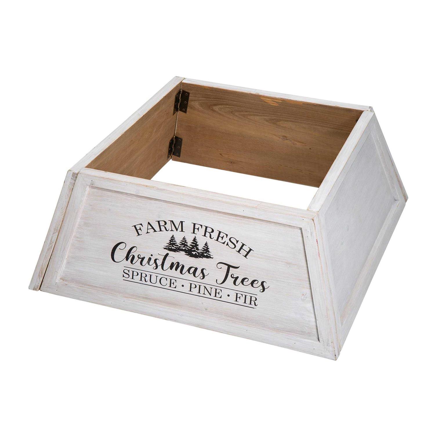 Glitzhome Farm Fresh Christmas Wooden Trapezoid Tree Collar
