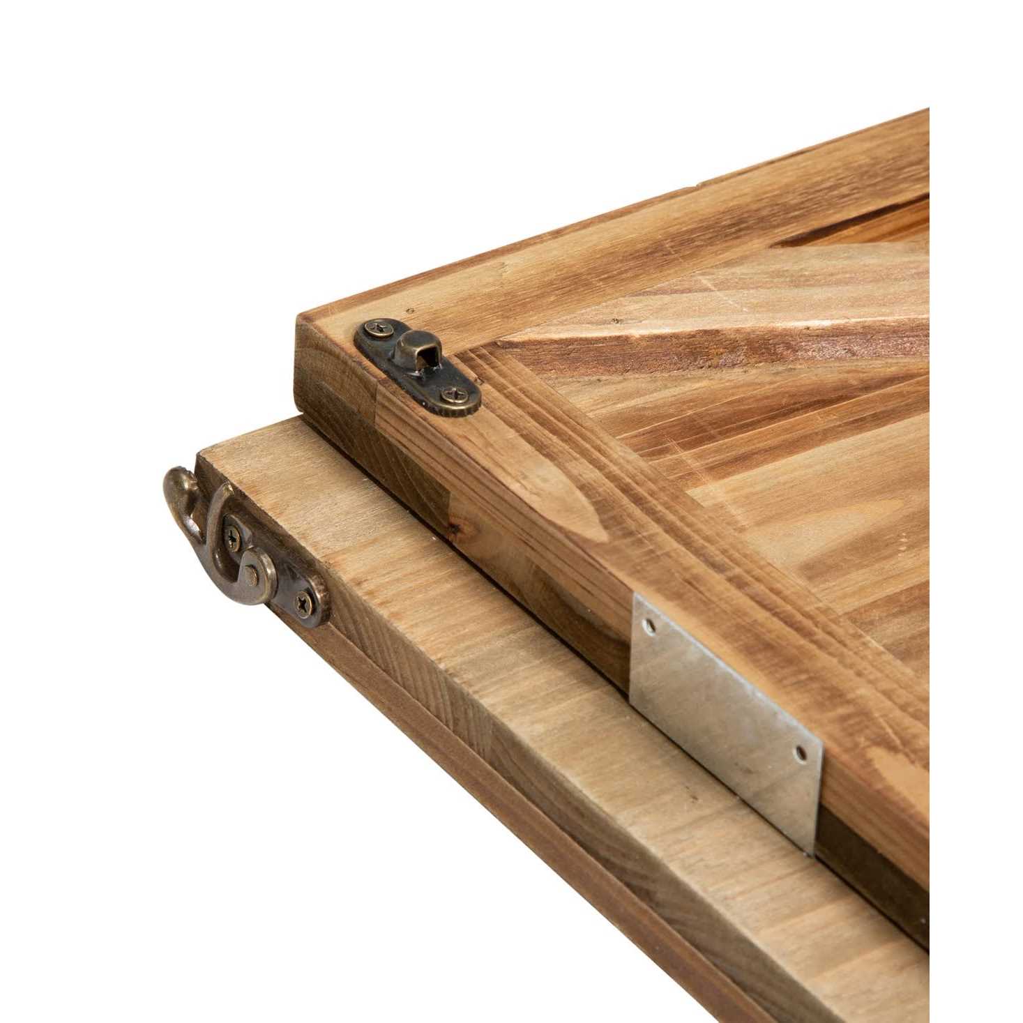 Our handcrafted tree box collars add a rustic, elegant charm to any home or business’s holiday decor. The tree boxes not only add beauty and hide the undesirable parts of your tree, but they also prevent kids and pets from getting into the bottom side of your tree. They are stained in natural wood finish. There are 4 panels and each panel has a locking bracket on them.