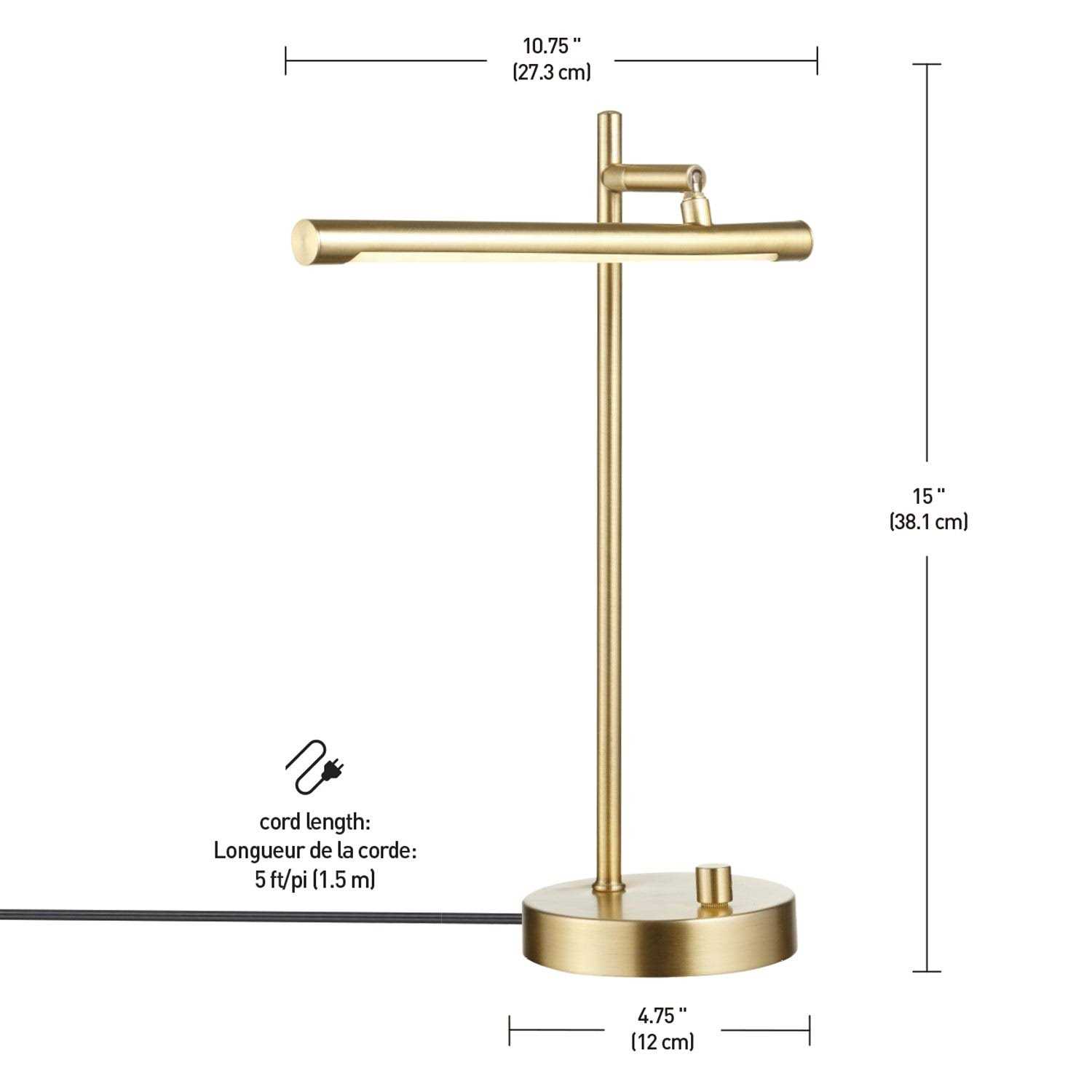 The simple design of the Novogratz x Globe West Desk Lamp is elevated by a matte brass finish and a clean, modern style. The integrated LED lamp head pivots up and down, from side to side and can be placed into a vertical position, so you can direct light where you need it most while the rotary switch lets you choose the amount of light for any situation. Seamlessly blending form, function and style while creating a statement, this light looks stunning in an office, living room or den. Decorate with the Novogratz and Globe Electric – lighting made easy.