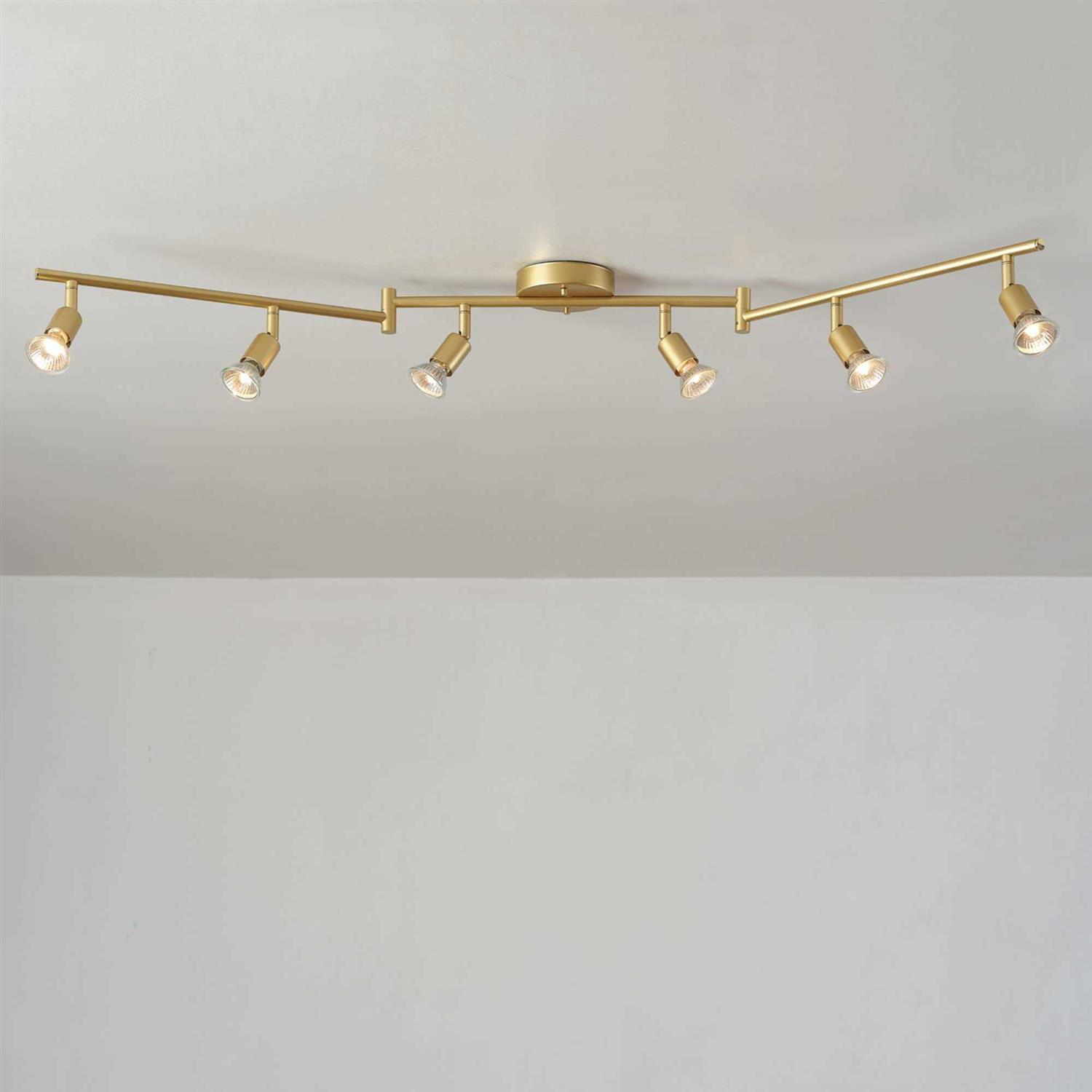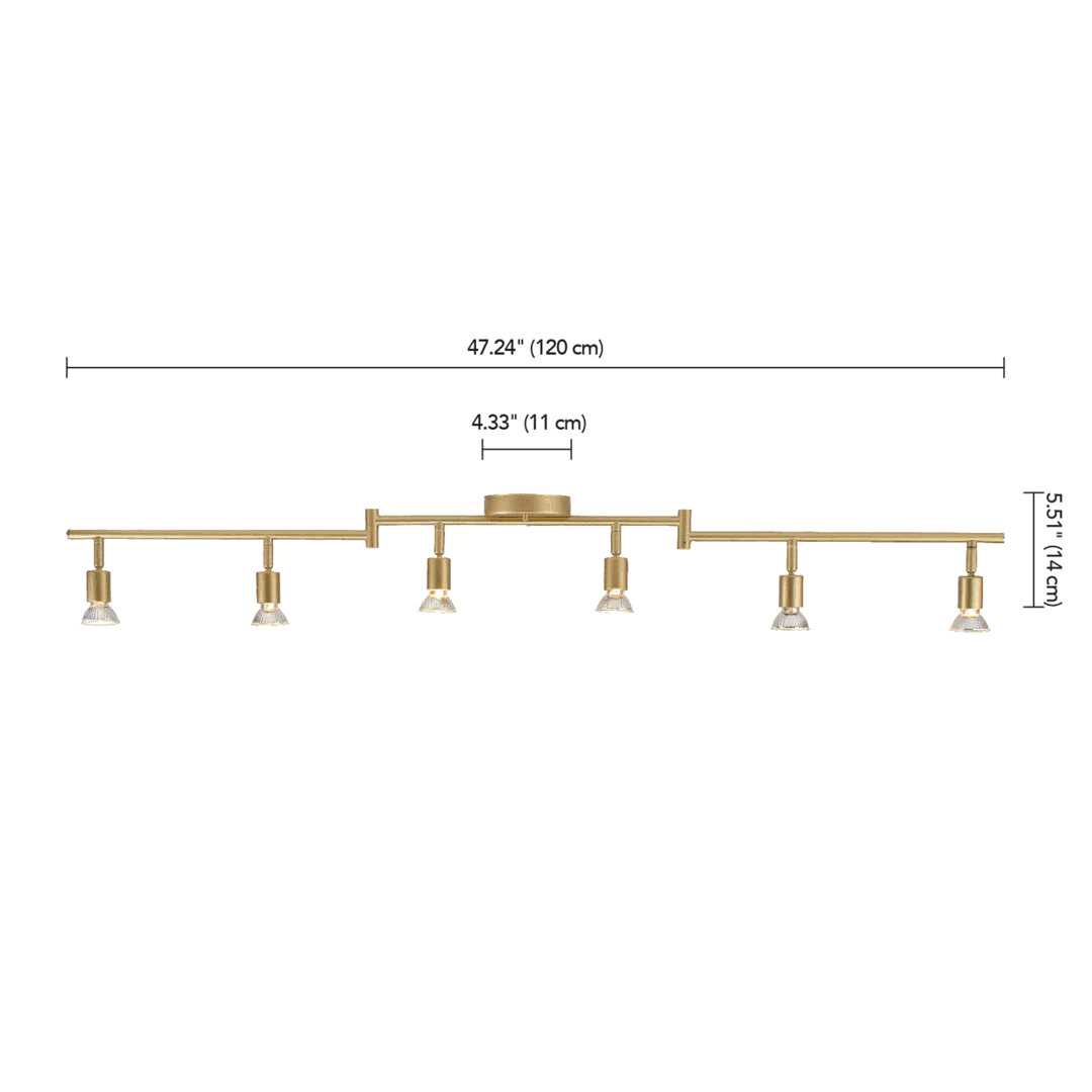 Globe Electric Company Redefine your living space with this versatile Track Lighting Collection. Each piece is made with a lightweight metal and a trendy open socket design that ensures functionality and style. The Payton 6-Light Foldable Track Lighting, Painted Brass boasts a contemporary painted brass finish that blends with a modern minimalist design to accent all home decor. Six pivoting track heads sit on bendable arms that allow you to choose the shape of your fixture while directing light wherever you need to create unique lighting designs for every room. Extremely versatile, the bars can be moved to create a long straight line, a V-shape, or an L-shape so you can use this light in your kitchen, hallway, entranceway, living room, bedroom, or anywhere you need it most.
