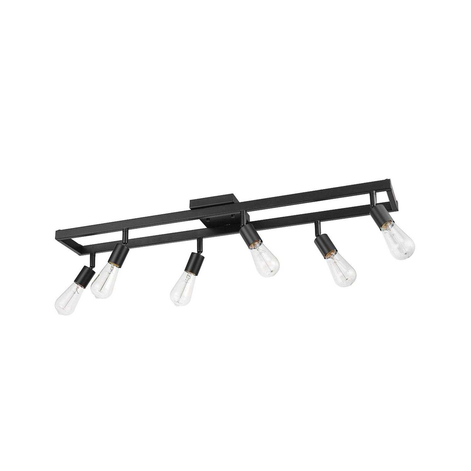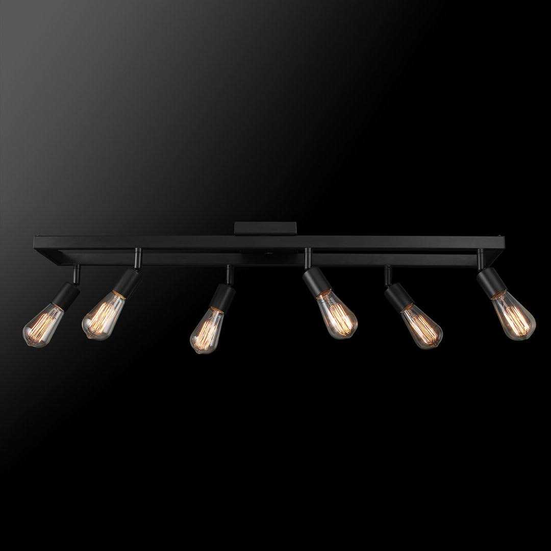 Globe Electric Company The unique construction of this 6-Light Track Light blends stylish design with functionality. The open rectangular shape creates visual appeal while housing the pivotable track heads. Each track head can be pointed in different directions to highlight all the important sections of your room thus adding to the overall interior design. The matte black finish complements any decor and completes an industrial farmhouse style.