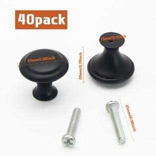 【Dimension information】each round cabinet knob is approx. 1.06 inch/ 27 mm in diameter, 0.79 inch/ 20 mm in height, and the screw is about 0.98 inch/ 25 mm;Please double check if the size is what you want before buying. 【Elegant appearance】The Black cabinet knobs have a wide appeal across a range of kitchen cabinet doors and drawers. The Matte Black knobs have a clean and timeless look that works with farmhouse, vintage, traditional and transitional styles. 【Quality material】 these drawer pulls are made of quality stainless steel and traditional round construction, With advanced technique so that they are lightweight, strong and durable, scratch-resistant and abrasion-resistant, not easy to break, which can be applied for a long time. 【Wide range of usage】the cabinets knobs not only can beautify your entire room, these black knob sets are also widely applied in kitchen cabinet, furniture door, closet, cupboard, desk drawer, wardrobe drawers or bookcase and so on. you will receive 40 pieces of black knobs and 40 pieces of screws, which are enough to satisfy your various daily needs and replacement; Screws included in the package help to simplify your work and improve the efficiency of installation process.