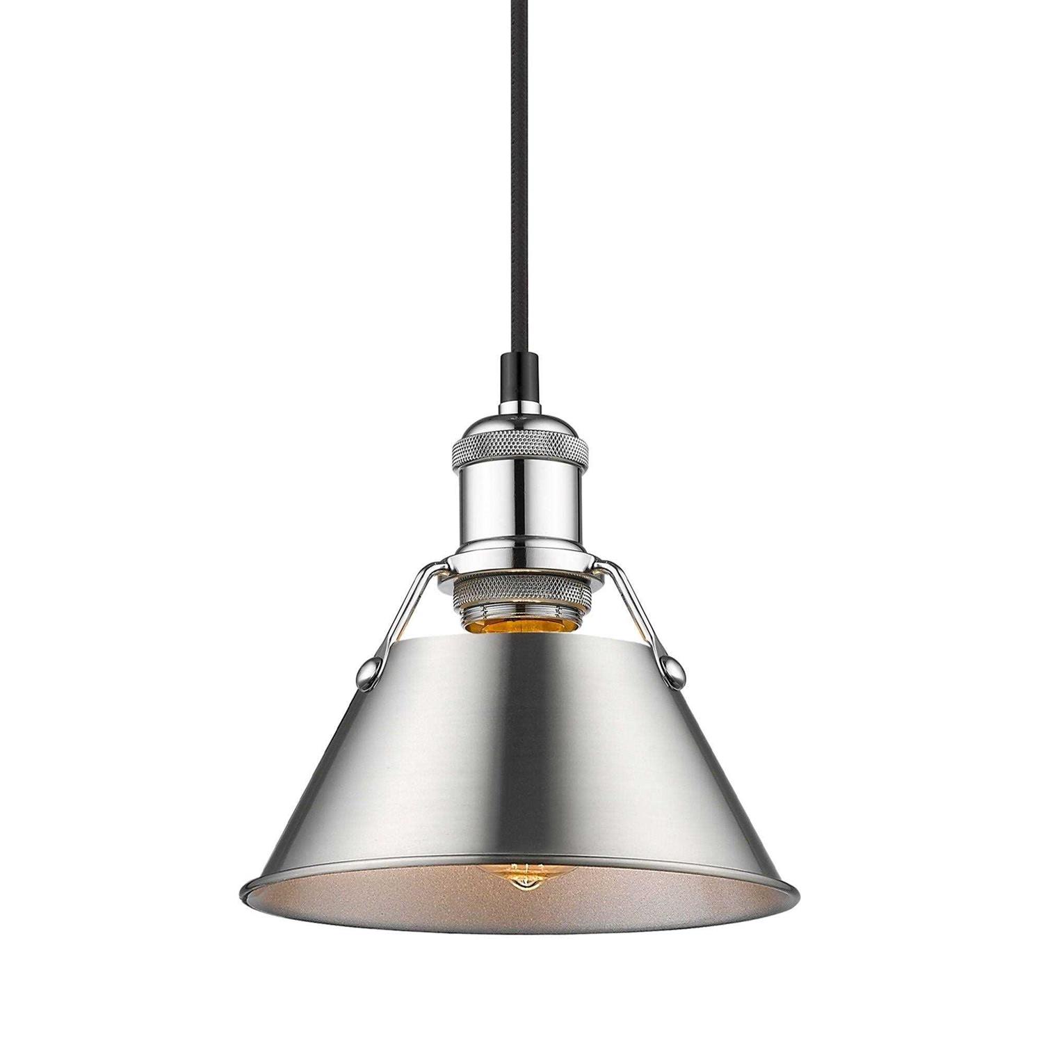 Orwell is an extensive assortment of industrial style fixtures. The beauty and character of the collection are in the refined details. This transitional series works well in a variety of settings. Partial shades shield the eyes from possible hot spots, while the open tops tease onlookers with a view of the sockets and bulbs. The design allows light and heat to escape from above and below the metal shades, providing both task and ambient lighting. Edison bulbs are recommended to compete the vintage, industrial look of the fixtures. A choice-selection of finish and shade color combinations heighten the appeal of the series. Opal glass shades are available for bath fixtures. Single pendants are suspended from woven fabric cords while multi-light fixtures are rod-hung.