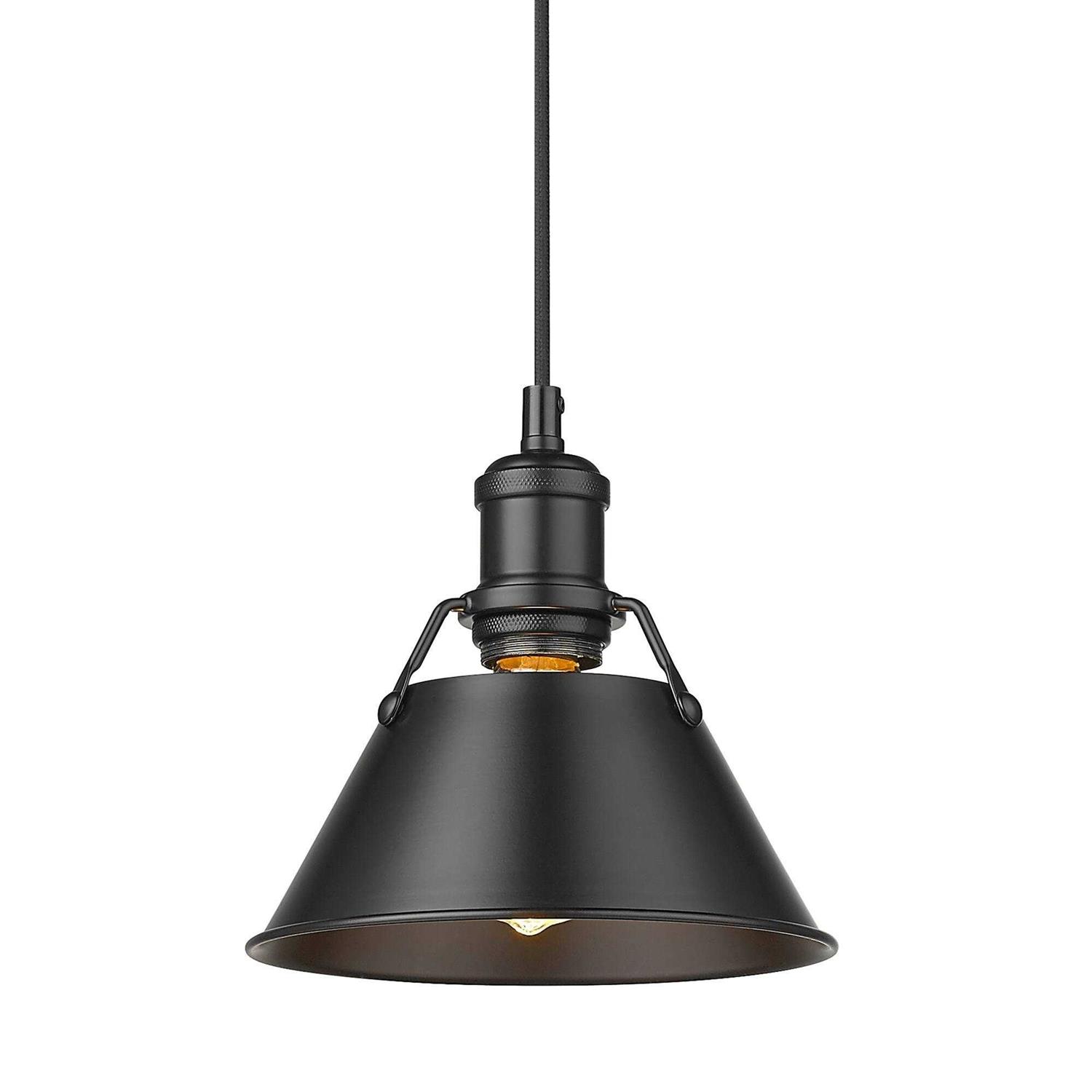 Orwell is an extensive assortment of industrial style fixtures. The beauty and character of the collection are in the refined details. This transitional series works well in a variety of settings. Partial shades shield the eyes from possible hot spots, while the open tops tease onlookers with a view of the sockets and bulbs. The design allows light and heat to escape from above and below the metal shades, providing both task and ambient lighting. Edison bulbs are recommended to complete the vintage, industrial look of the fixtures. A choice-selection of finish and shade color combinations heighten the appeal of the series. Opal glass and clear glass shades are available for select fixtures. Single pendants are suspended from woven fabric cords while multi-light fixtures are rod-hung. Vintage, industrial style Transitional design Available in a variety of frame finishes Available with multiple shade options Ambient up and down light Durable steel construction All mounting hardware included Approved for damp locations Expand a phenomenal update to your dwelling with the help of this extraordinarily Golden Lighting 3-Orwell Small Pendant Gold with Clear Glass.