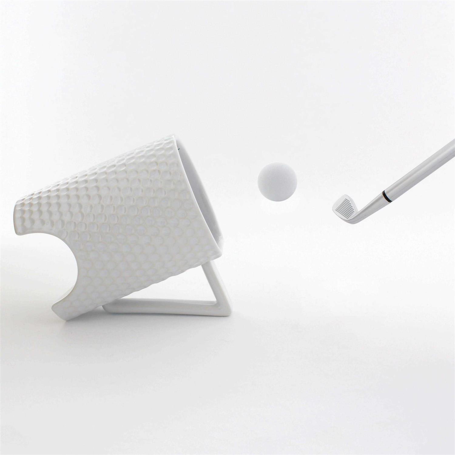 Feeling teed off? Transport yourself to the green and relieve the stresses of the day as you putt, chip and, most importantly, sip on your favourite beverage. Putt the ball through the arch or turn the mug to rest on its handle and chip the ball into it. Includes Golf Club pen and foam golf balls. Microwave and dishwasher safe.