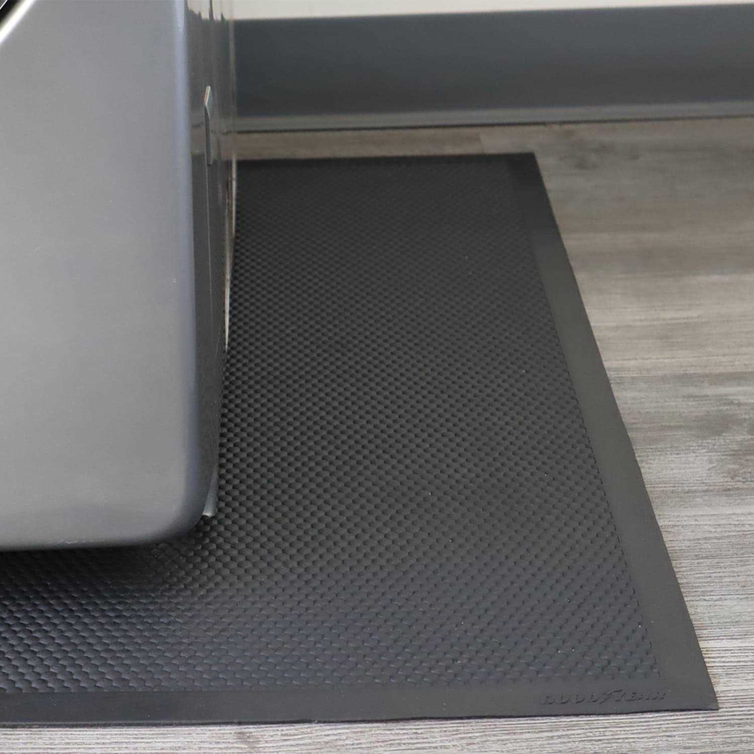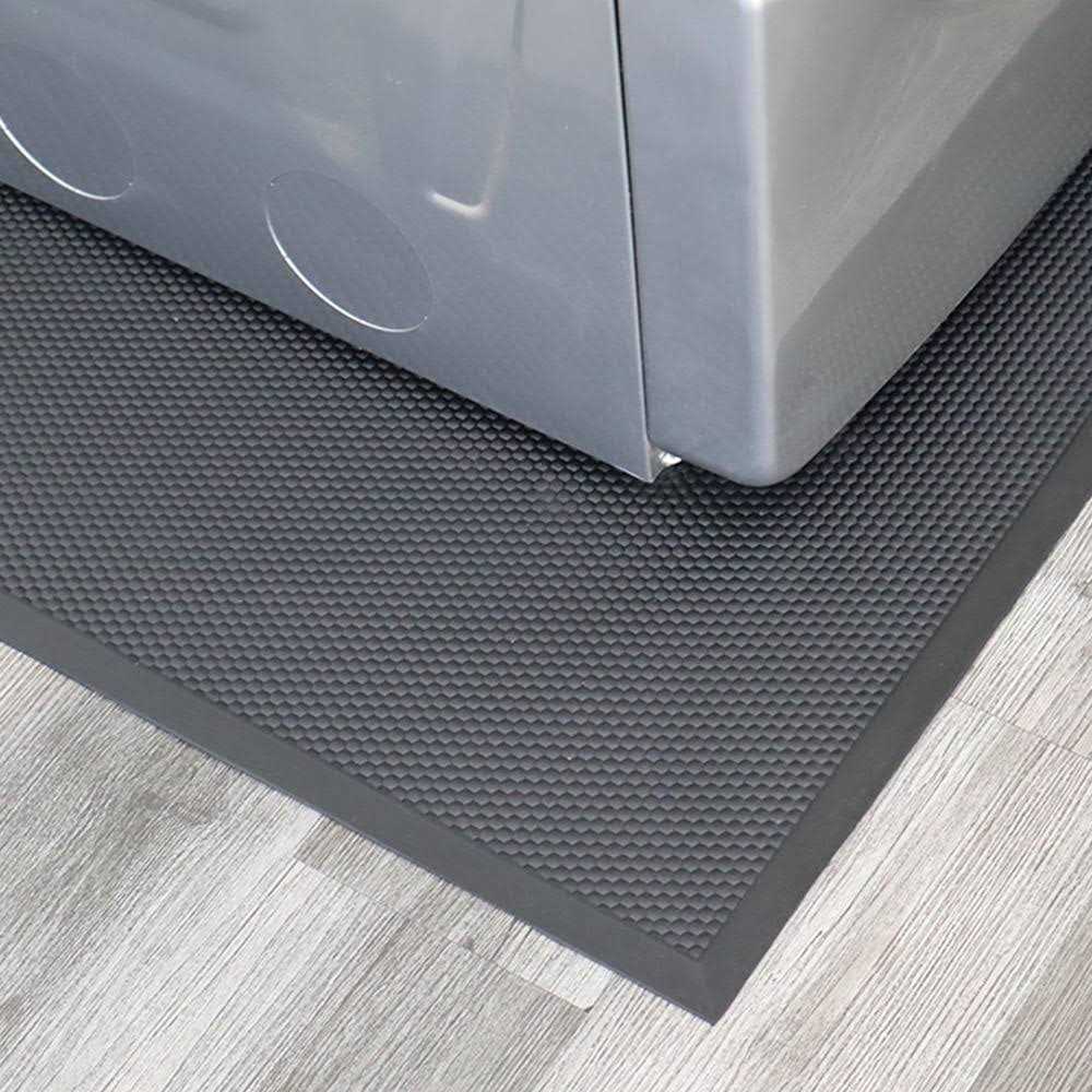 Goodyear The Goodyear Rubber “Washer and Dryer Mat” is perfect for protecting your floors against damage caused by the operations of household appliances such as dryers and washing machines. These machines often rumble when in use, potentially damaging your floors over time, making a lot of noise, and—sometimes—moving out of place. Our “Washer and Dryer Mat” is a durable washing-machine vibration mat designed to combat all of these issues—it absorbs the shocks emitted by your appliances; it dampens noise; and it increases traction. This laundry-room rubber mat is made of a combination of natural and reclaimed rubbers. Our washer/dryer rubber mat is 5mm-thick (just under 1/4″-thick, 35” x 31”. This washing-machine mat has a durometer of Shore 60A, which makes it a hard yet pliable product. Rubber is the ideal material for creating a protective, washer and dryer mat, as it provides excellent shock-absorbing and slip-resistant properties that work to protect the surface beneath it. Rubber’s shock-absorbance prevents subflooring damage and dampens unnecessary noise. In addition, this washer/dryer floor mat is highly water-resistant, which means that they still enhance traction despite the presence of moisture. Overall, the Goodyear Rubber “Washer and Dryer Mat” helps reduce noise, protect subfloors, and enhance traction.